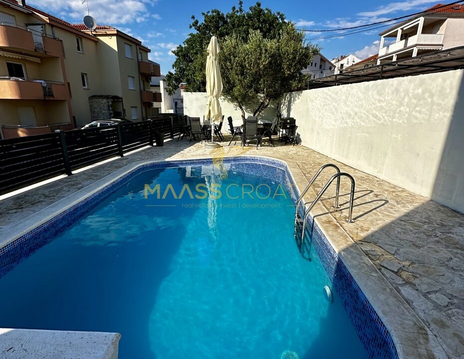 Tu je i grijani bazen (6m x 3m, 18m²) sa sustavom elektrolize soli, kao i sunčalište i prostor za sunčanje. U neposrednoj blizini bazena nalazi se natkrivena ljetna terasa s još jednom terasom s ljetnom kuhinjom i roštiljem – savršeno mjesto za odmor i zabavu s prijateljima i obitelji.
