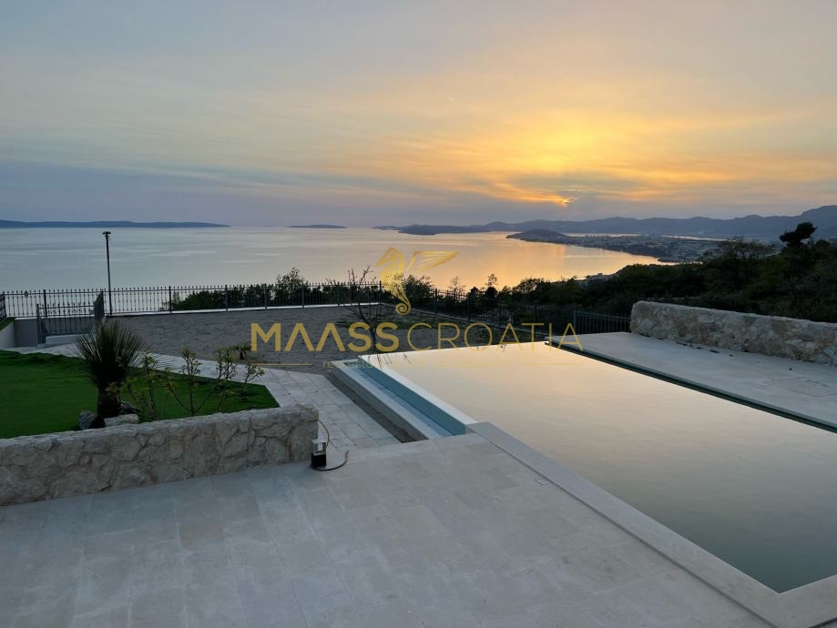 Ova posebna i prekrasna luksuzna vila s bazenom u Podstrani ima prekrasan pogled na more, otoke i grad Split...