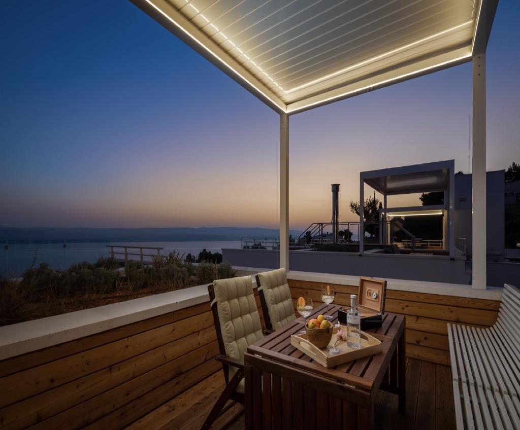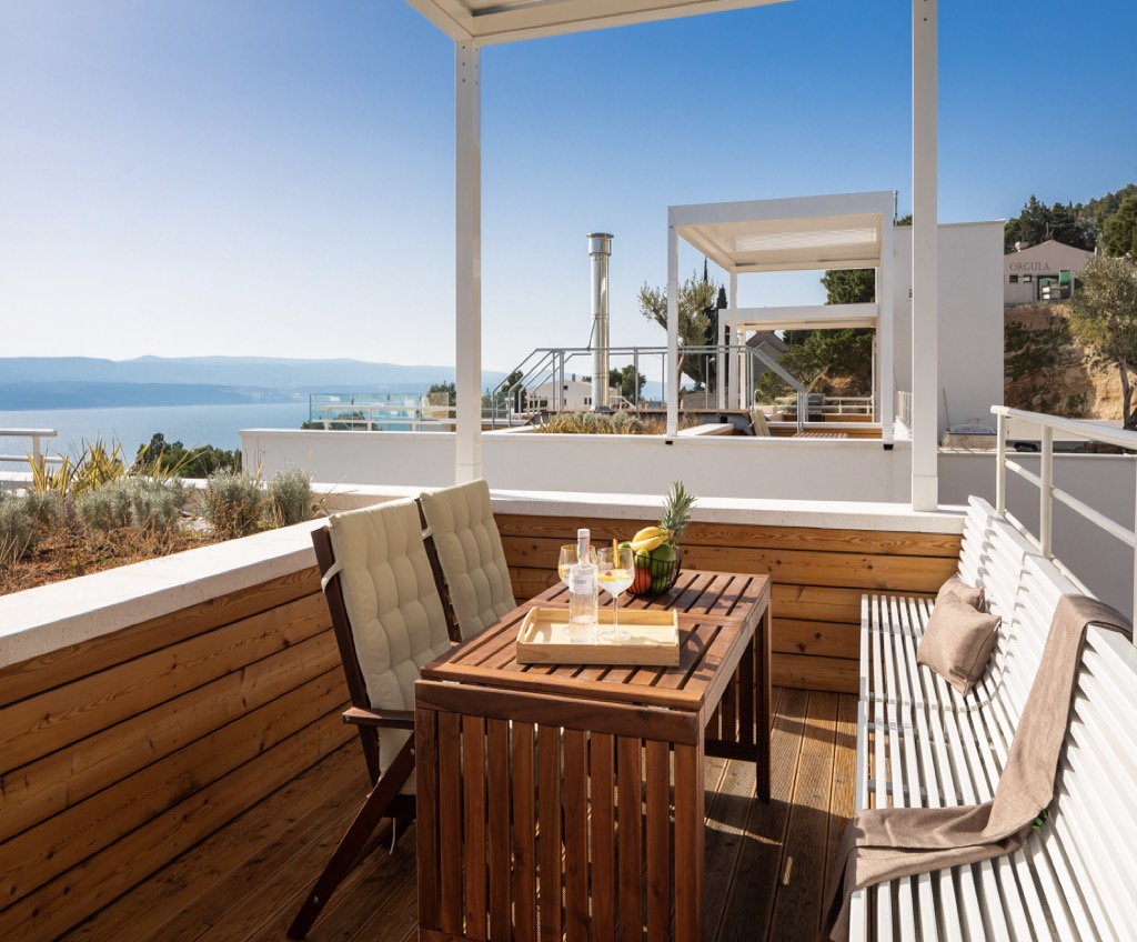 Prostrana terasa na otvorenom pruža savršeno mjesto za objedovanje na otvorenom ili jednostavno uživanje u svježem morskom povjetarcu.