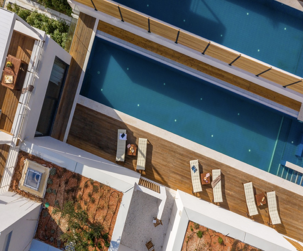 Jedan od vrhunaca ovih vila su dva prekrasna bazena, svaki impresivne veličine 66 četvornih metara.