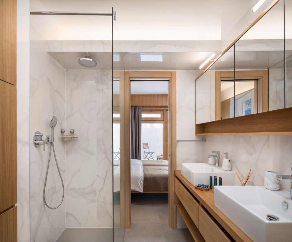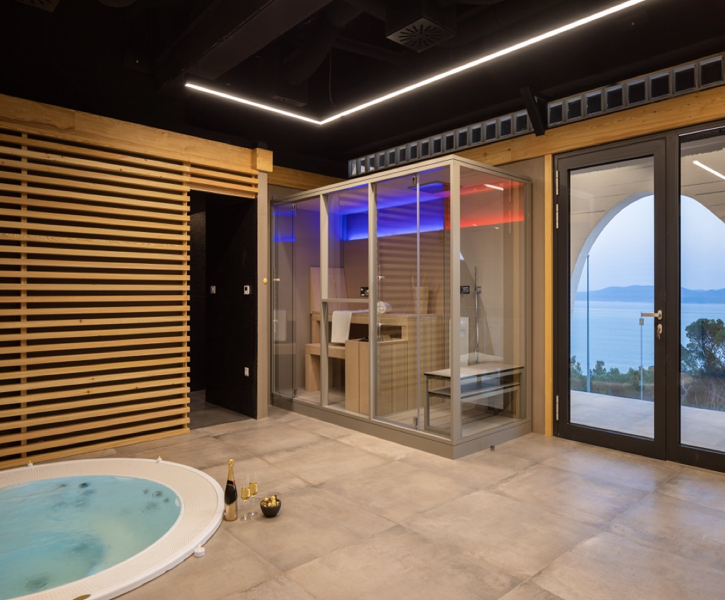 Klima uređaj i podno grijanje osiguravaju udobnost gostima tijekom cijele godine, dok moderni sadržaji poput dizala pružaju praktičnost i pristupačnost svima.
