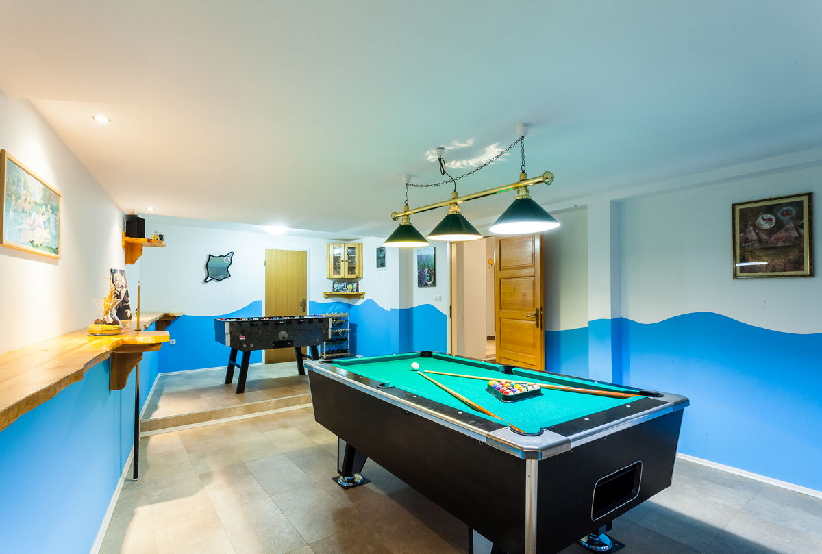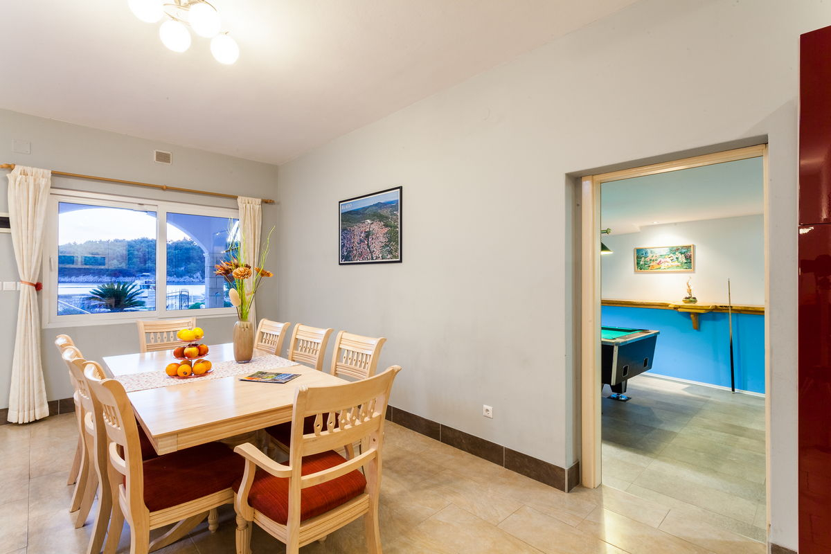 Prostrani dnevni boravak i cijeli interijer kuće vrlo su moderni i elegantni, potpuno opremljeni elegantnim i suvremenim aparatima. Dodatni bonus ove kuće je dodatna igraonica s biljarskim stolom, što osigurava da uvijek imate dovoljno prostora za zabavu.