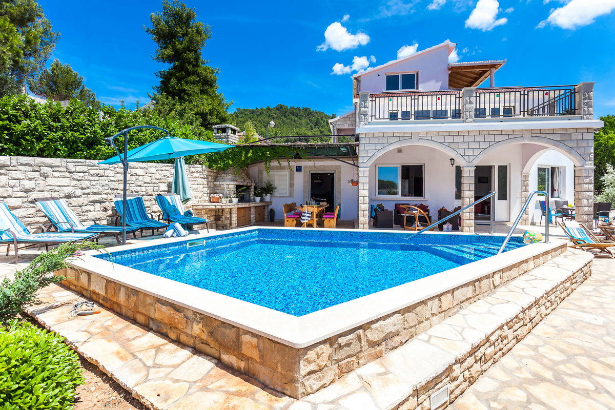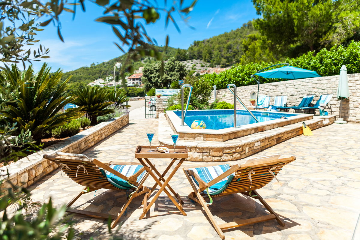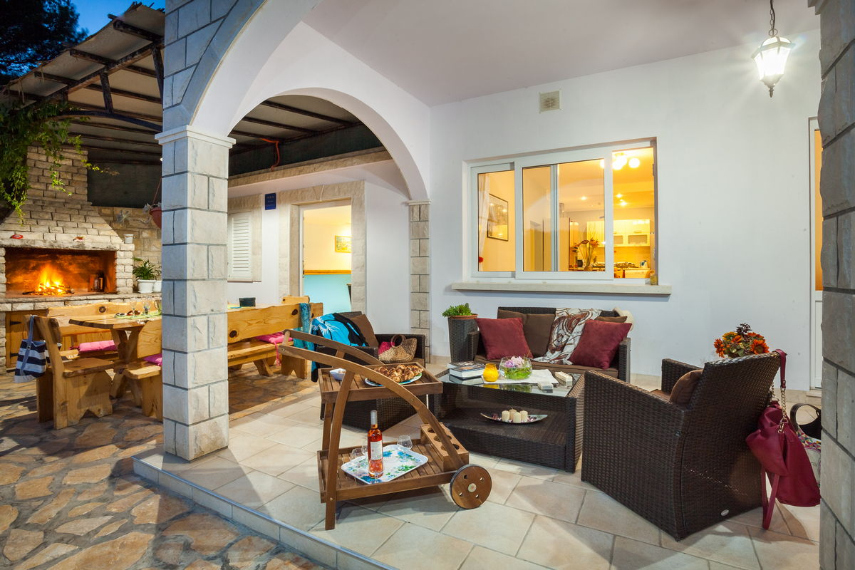 Smještena u malom zaljevu, daleko od gradske vreve, nalazi se ova prekrasna, polutradicionalna kuća na otoku Korčuli.