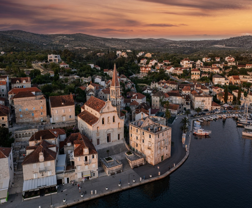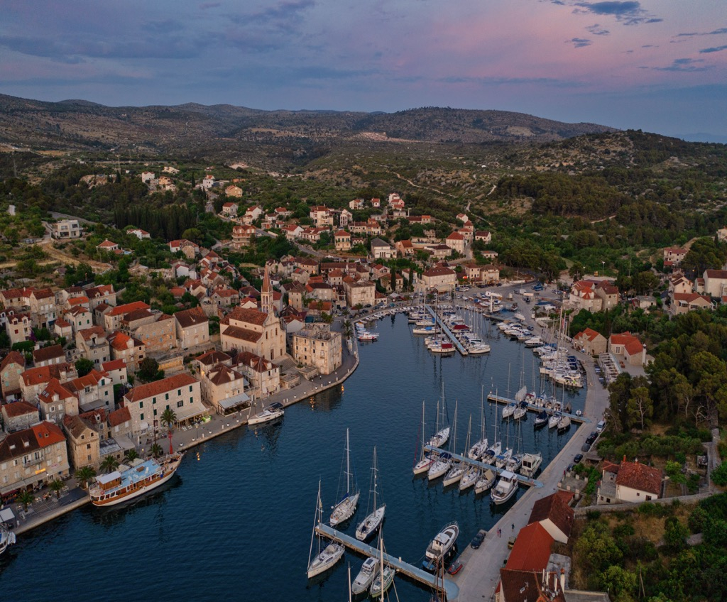 Milna ligger i den vestlige delen av Brač, 18 kilometer fra Supetar, og er nå kjent som et fristed for seilere fra hele verden.
