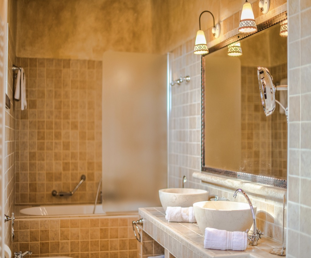 Unutrašnjost je potpuno opremljena i elegantna, s 4 prostrane spavaće sobe, 5 kupaonica i 2 odvojena WC-a.