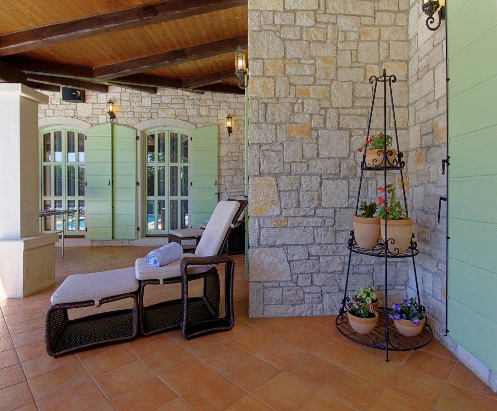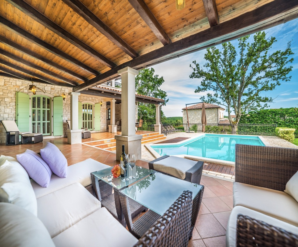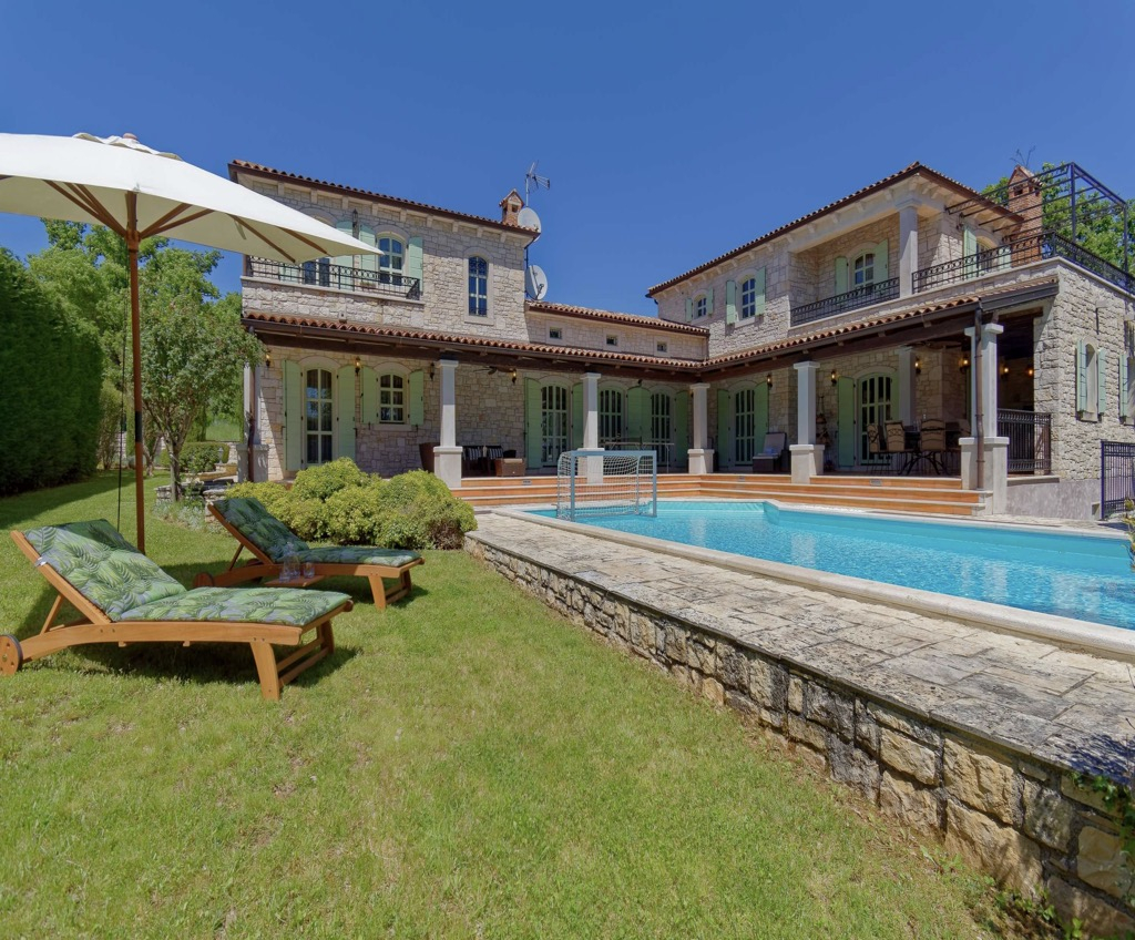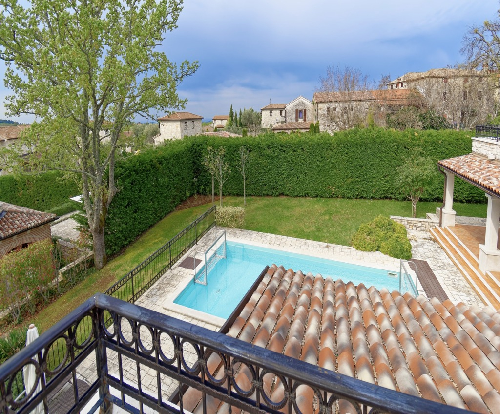 Vani se nalazi veliki bazen s terasom za popločavanje koji upotpunjuje cjelokupni dizajn.