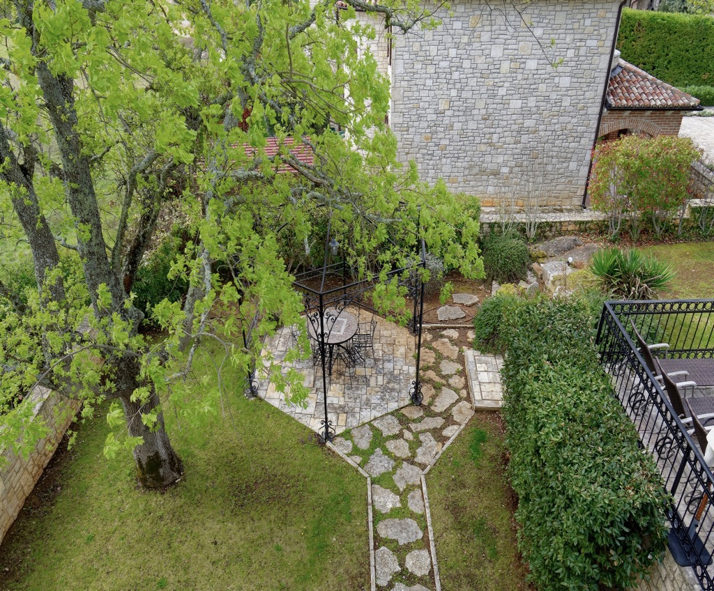 Vrt se može pohvaliti malim, romantičnim prostorom za sjedenje okruženim raznolikom vrtnom vegetacijom.