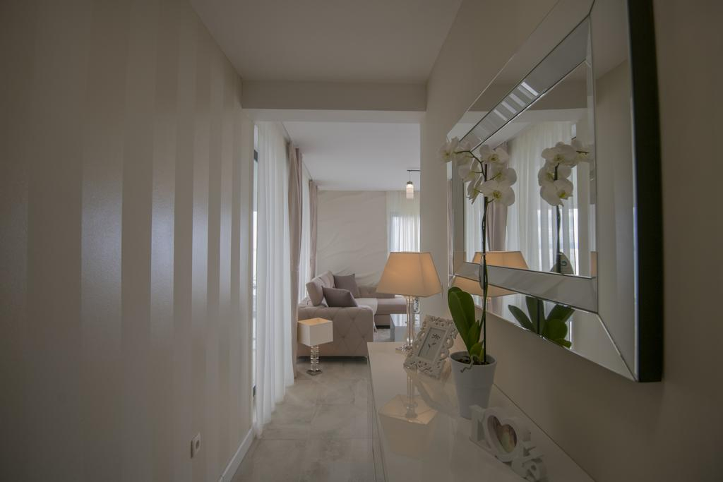 Prilika koju ne smijete propustiti. Unutrašnjost je jednako zanimljivo dizajnirana kao i vanjština: promišljeno isplanirane, prostrane sobe s visokim, bijelim stropovima i velikim prozorima stvaraju svijetlu i ugodnu atmosferu. Istovremeno ćete se osjećati kao kod kuće. Apsolutni vrhunac nekretnine je veliki bazen na terasi u prizemlju, koji se besprijekorno ulijeva u dnevni boravak. Ova kuća je dinamična i svestrana. Naravno, uključuje i parkirno mjesto i mali, ali šarmantan vrt koji možete u potpunosti dizajnirati prema svojoj želji.