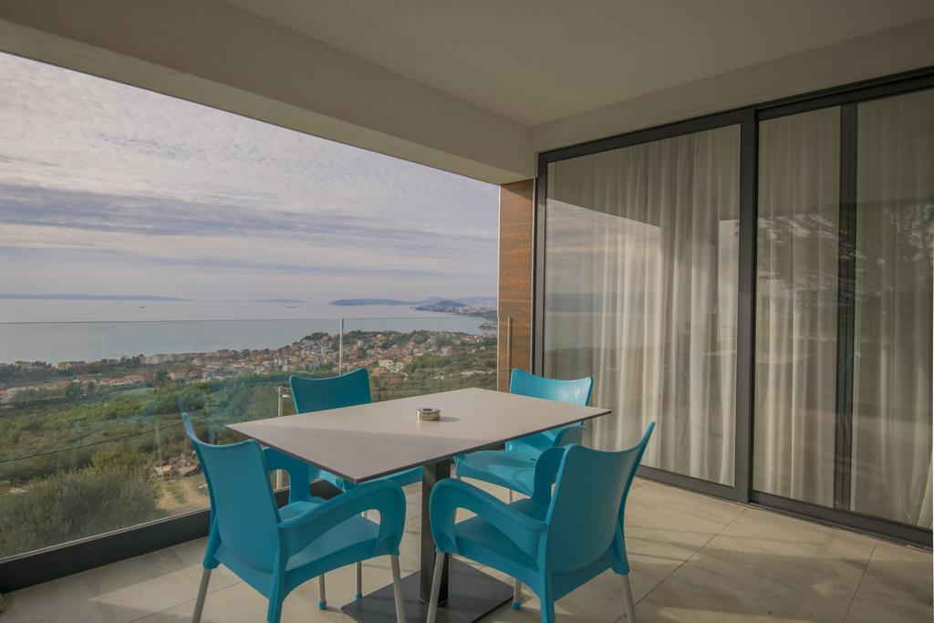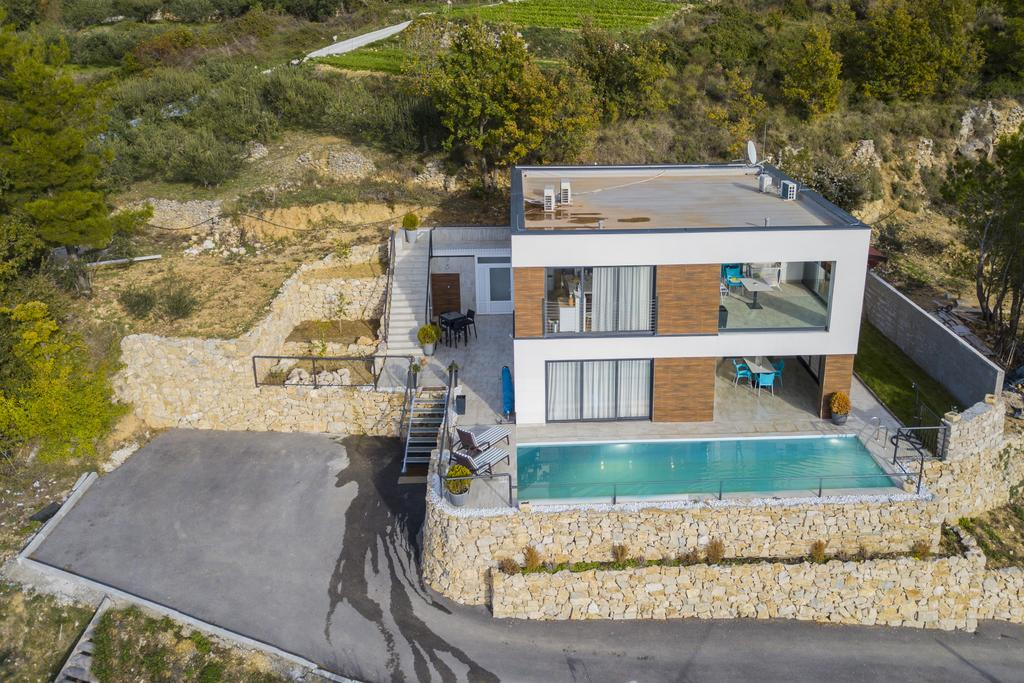 Strateški smještena u krajoliku brda, gotovo se čini kao dio prirode. U ovom dvokatnom kompleksu možete svako jutro uživati u izlasku sunca nad Splitskim zaljevom i okolnim otocima.