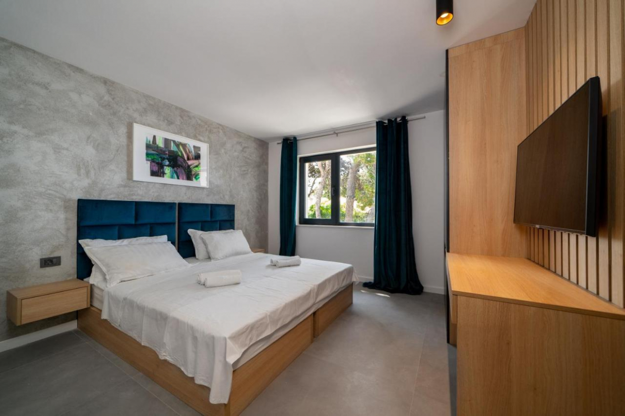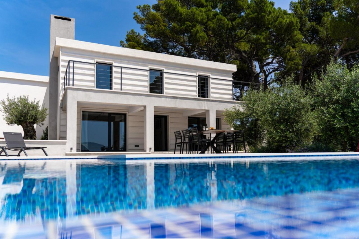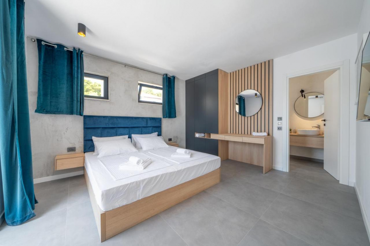 Zakoračite u prostrani interijer od 314 m², s pet spavaćih soba i pet kupaonica, savršen za velike obitelji ili grupe prijatelja. Dizajn otvorenog plana daje prednost udobnosti i stilu, s visokokvalitetnim završnim obradama i dizajnerskim komadima.