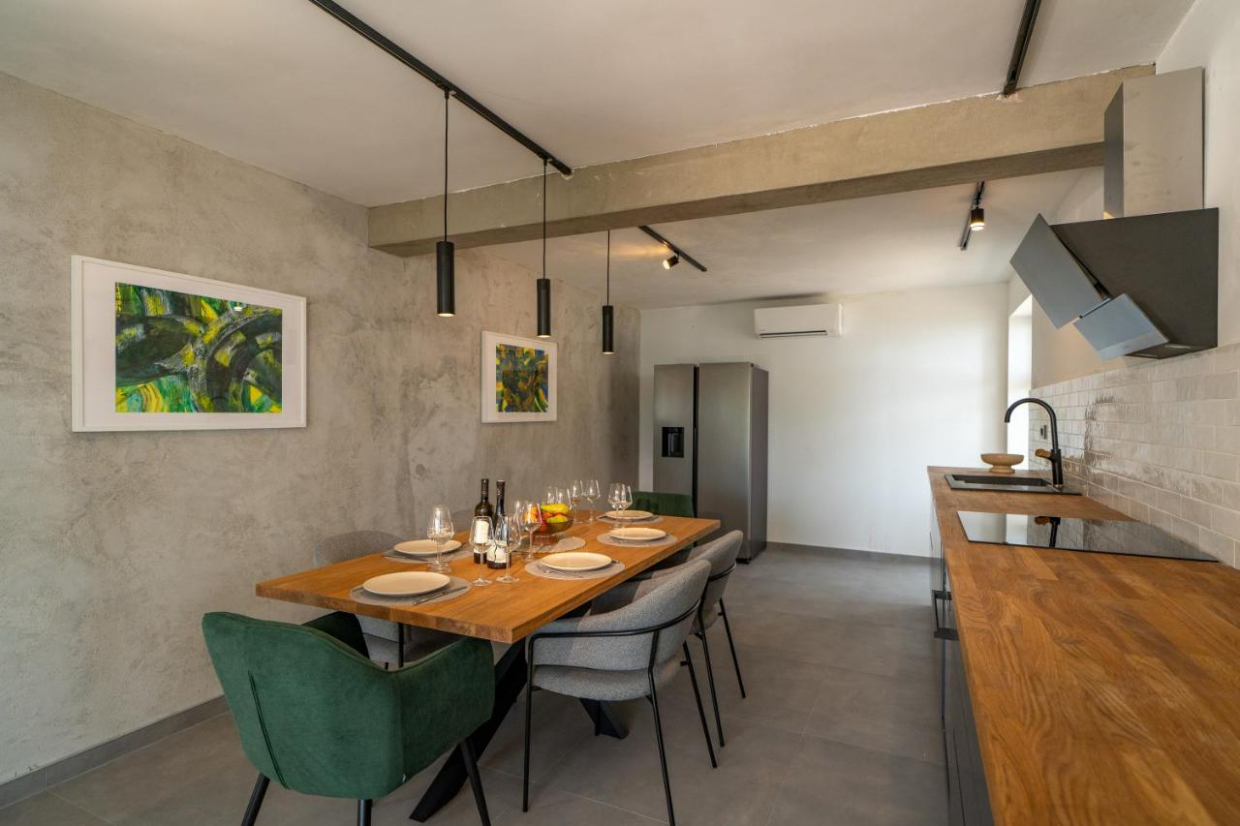 Bezvremenski kameni eksterijer besprijekorno se stapa s okolnim krajolikom, stvarajući osjećaj sklada i spokoja.