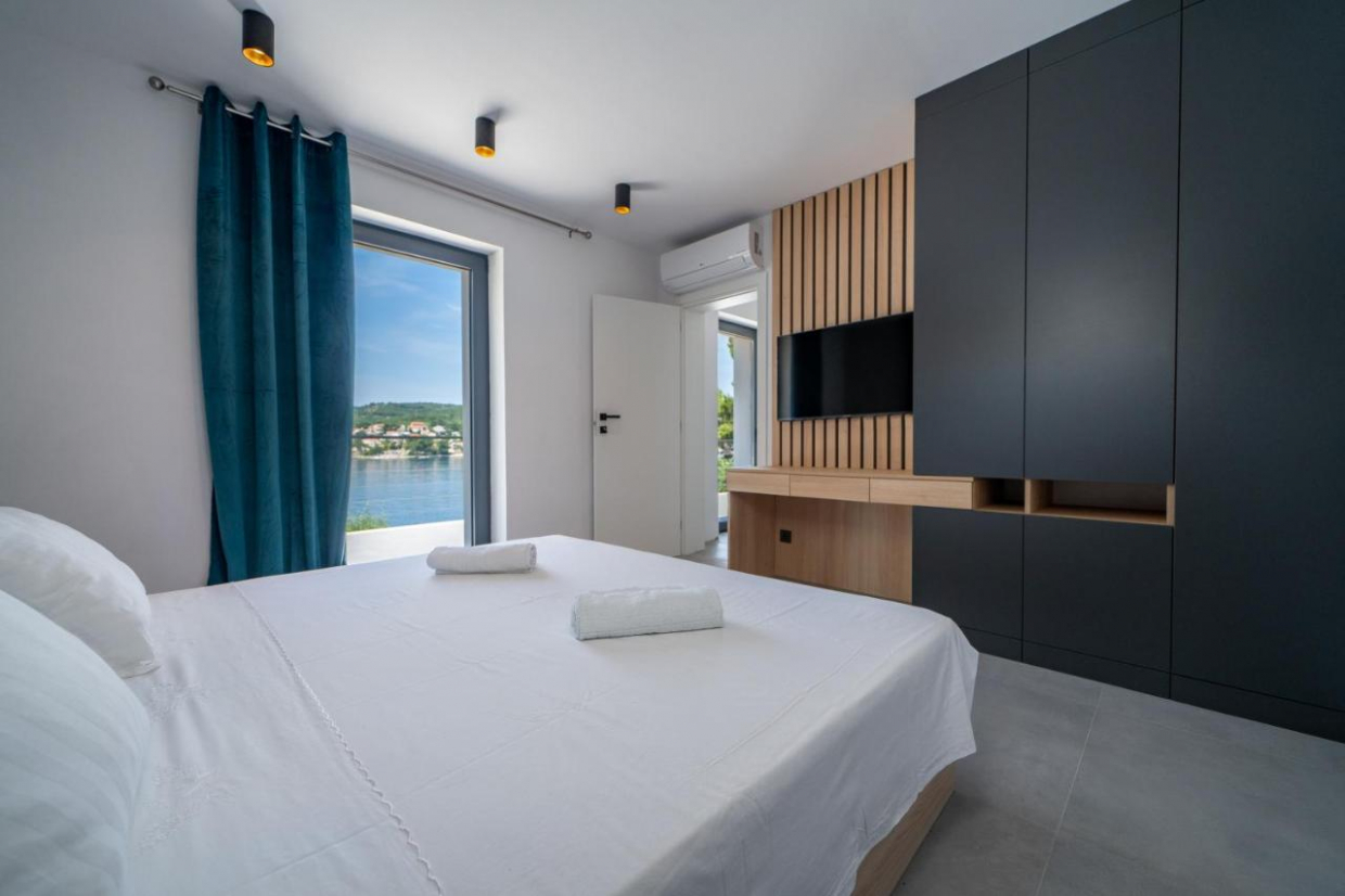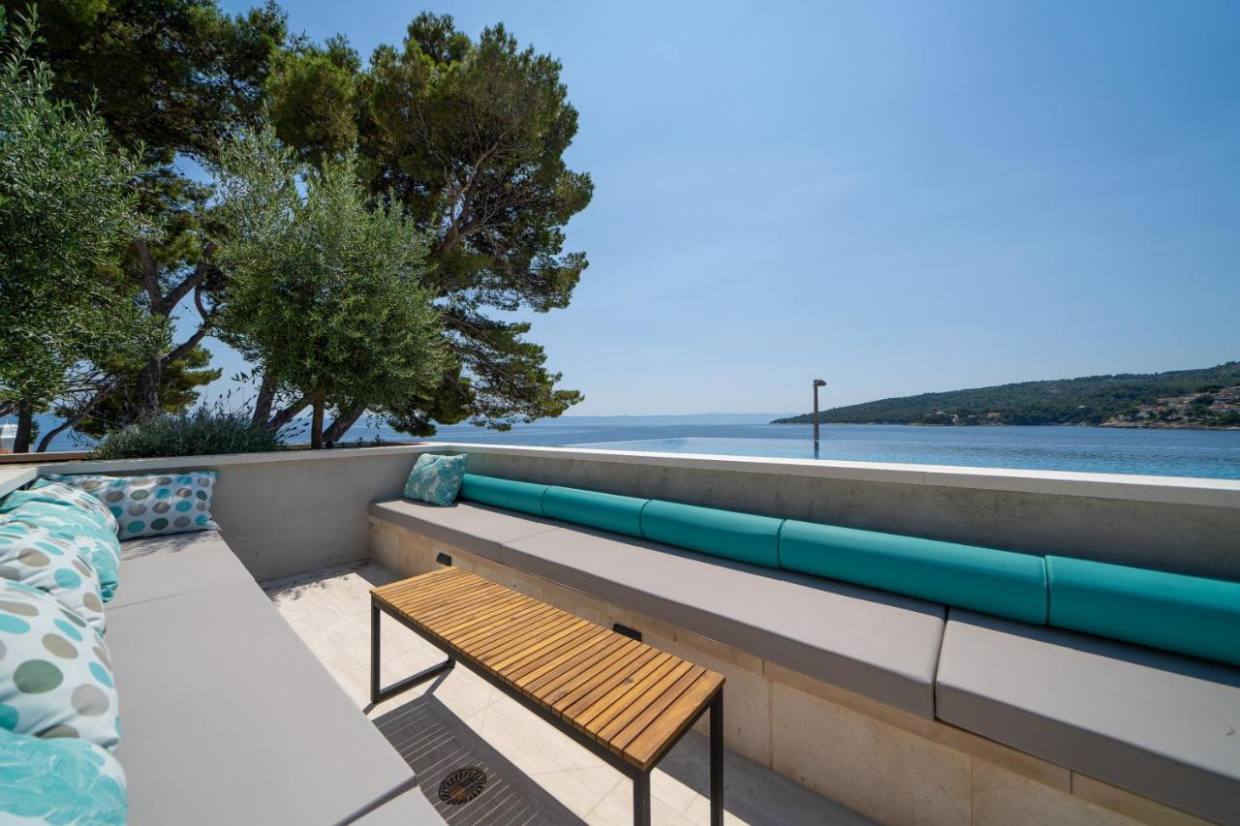 Opustite se u prostranom vanjskom prostoru, smještenom na parceli od 1100 m². Bujni vrt i terasa pružaju idealno okruženje za objedovanje na otvorenom ili uživanje u čaši vina dok promatrate zalazak sunca nad kristalno čistim vodama Jadranskog mora.