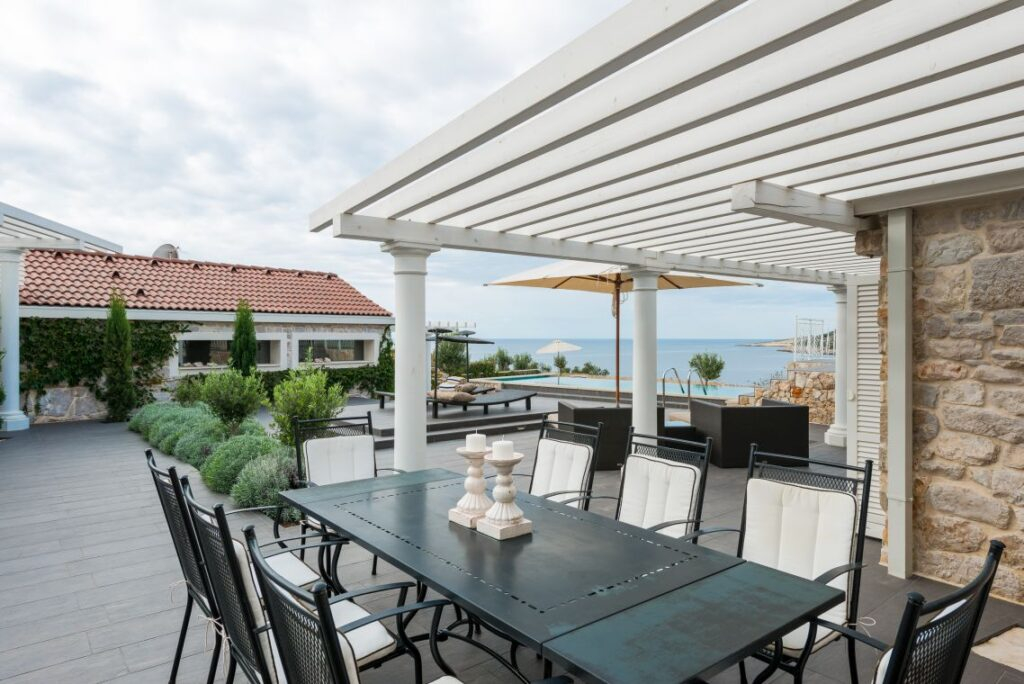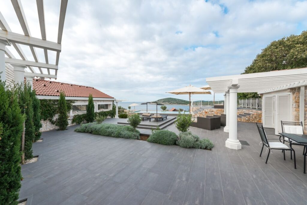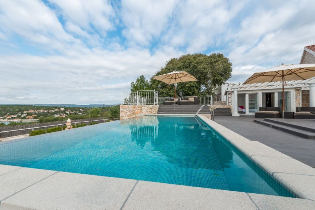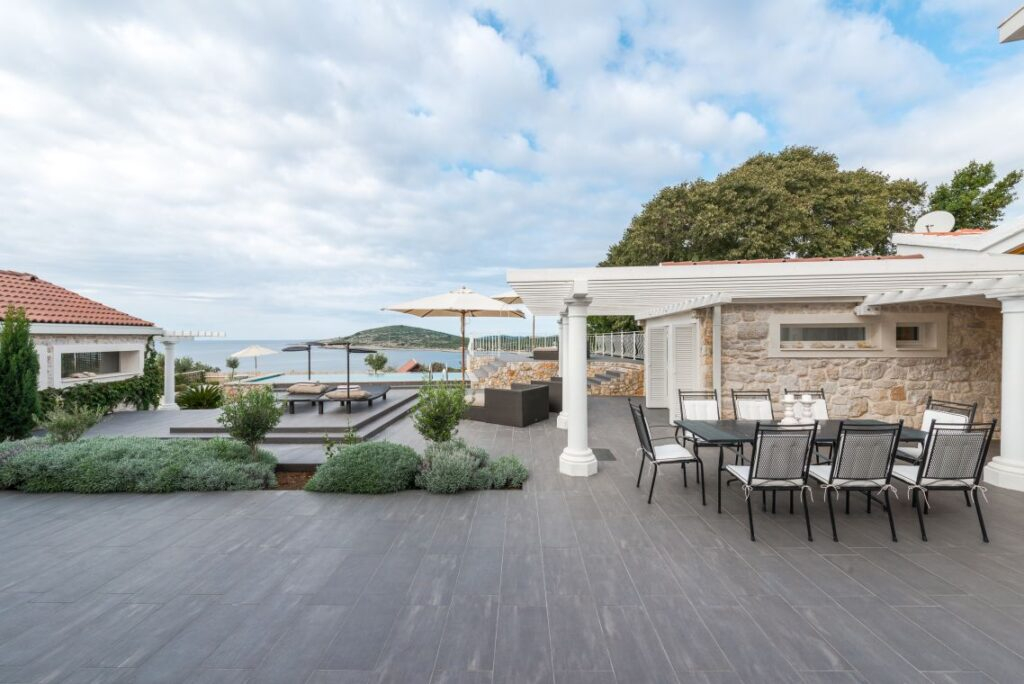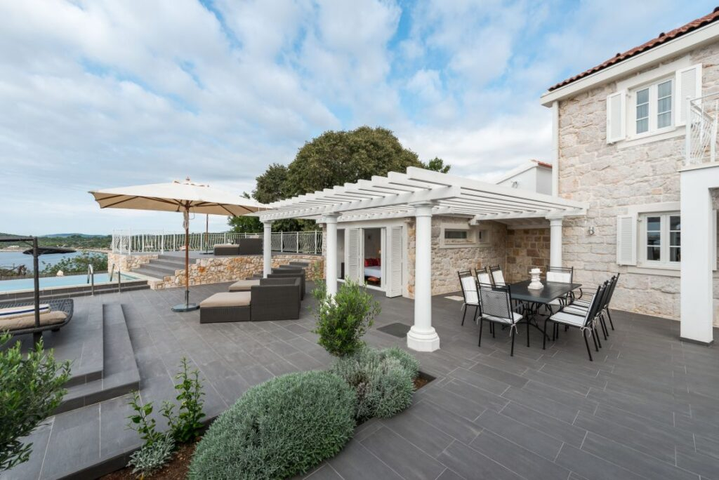 Gostinska kuća s izravnim pristupom terasi i velikom bazenu upotpunjuje ponudu. Interijer impresionira svojom elegancijom i izdržljivošću, a istovremeno prenosi ugodnu atmosferu stanovanja. Pravi vrhunac je prostrana terasa, koju karakterizira dinamičan dizajn i svestrana upotreba. Bilo da se radi o mjestu susreta za društvena okupljanja ili jednostavno opuštanja – mogućnosti su gotovo beskrajne!