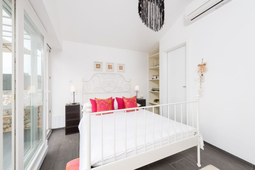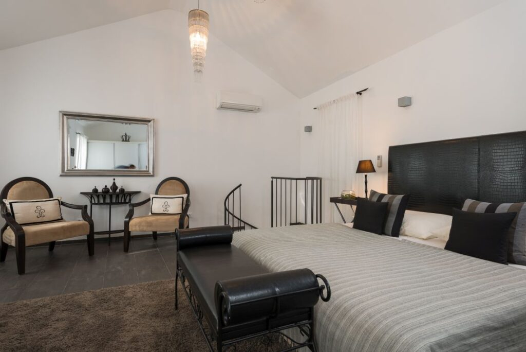 Dva kata povezana su s prvim katom spiralnim stubištem. Tamo ćete pronaći prostranu glavnu spavaću sobu i prekrasnu terasu s udobnim foteljama za opuštanje i uživanje u pogledu na nekretninu, bazen i beskrajno more.