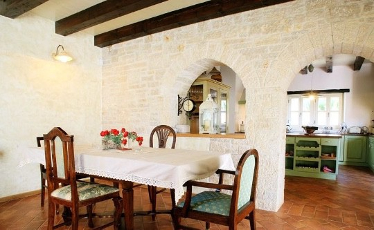 Prekrasni bijeli kameni zidovi i masivne drvene grede na stropu daju ovoj kući prepoznatljiv karakter i identitet regije.