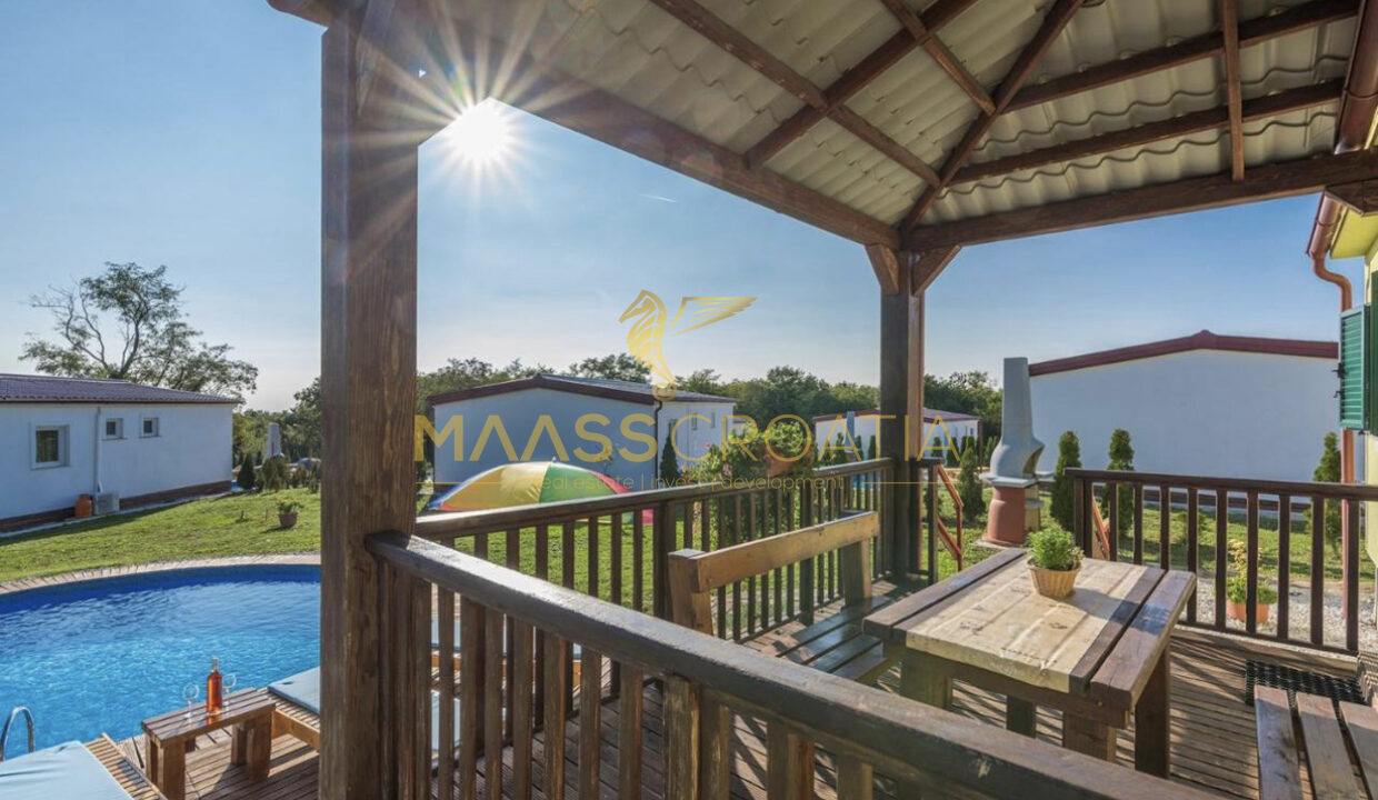 Park za odmor sa 9 kuća za odmor na mirnoj i sunčanoj lokaciji, cca 5 km od centra Tinjana, 20 km od mora i plaže, na parceli od 11547 m2.