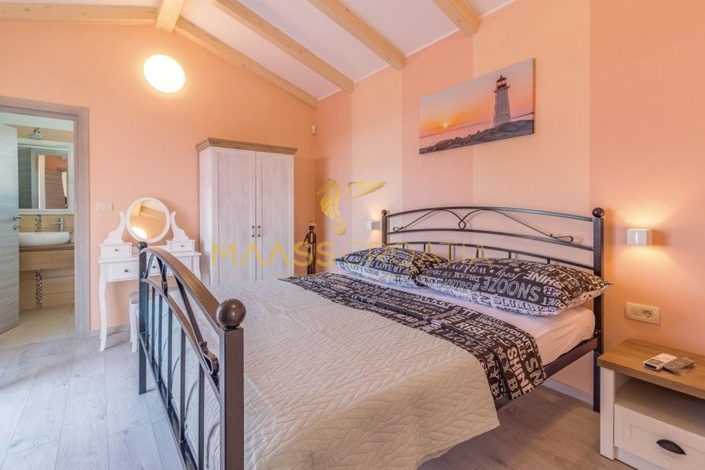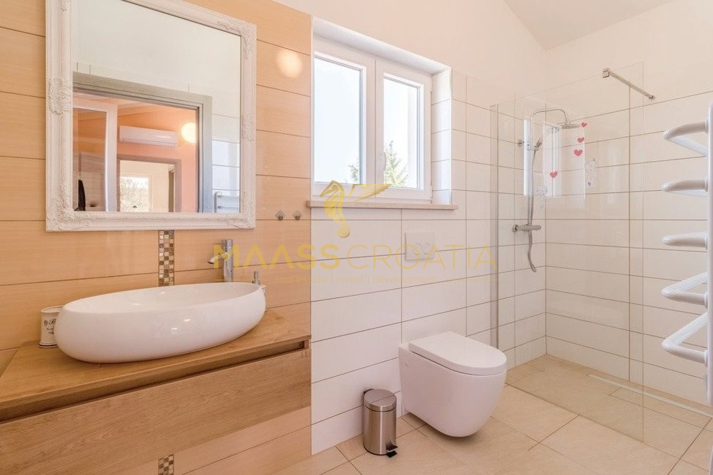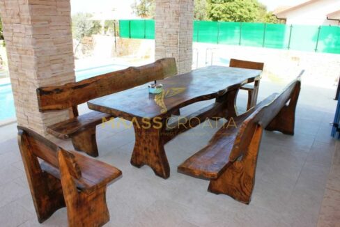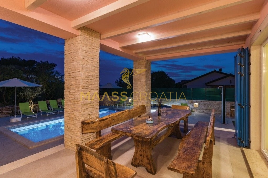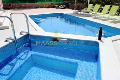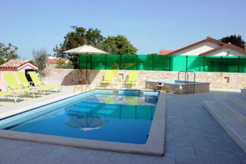 Okućnica je pažljivo uređena, s bazenom, jacuzzijem i sadržajima za djecu. Vila se prodaje potpuno namještena te je kategorizirana s 3 zvjezdice, što je čini idealnom kako za turističko iznajmljivanje, tako i za cjelogodišnje stanovanje.