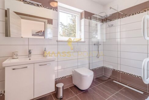 Sastoji se od prizemlja i kata – u prizemlju se nalaze prostrani dnevni boravak, kuhinja, blagovaonica, spavaća soba s kupaonicom i toalet, dok su na katu tri spavaće sobe, svaka s vlastitom kupaonicom i terasom s pogledom na more.