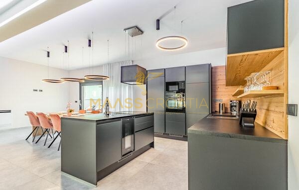 Izuzetno kvalitetno građena luksuzna vila, opremljena podnim grijanjem, toplinskim pumpama, termofasadom, solarnim panelima, keramikom, namještajem i kućanskim aparatima. Nekretnina je u završnoj fazi uređenja.