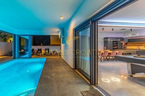 Izuzetno kvalitetno građena luksuzna vila, opremljena podnim grijanjem, toplinskim pumpama, termofasadom, solarnim panelima, keramikom, namještajem i kućanskim aparatima. Nekretnina je u završnoj fazi uređenja.
