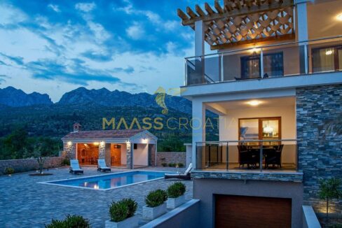 Ova prekrasna vila, izgrađena 2018. godine, ima klima-uređaje, prostrane balkone te 4 spavaće sobe sa pripadajućim kupaonicama.