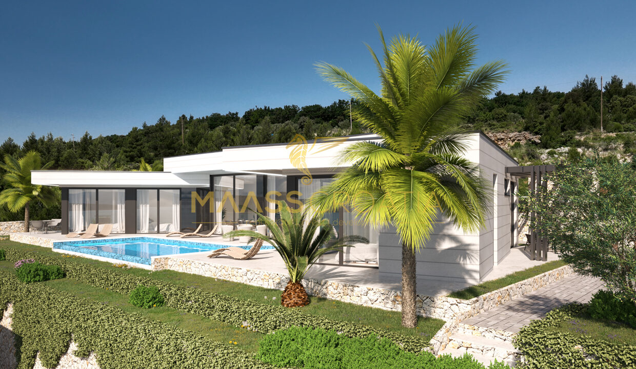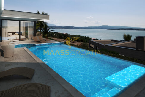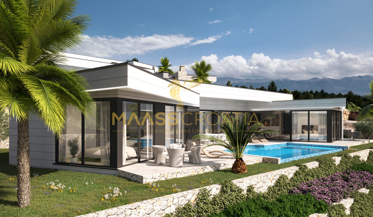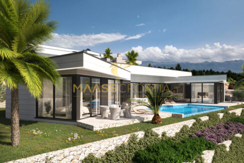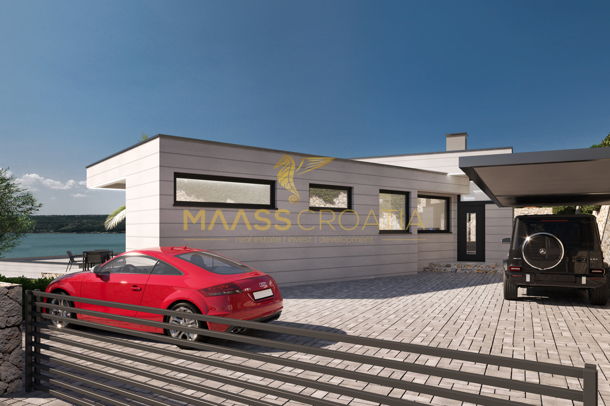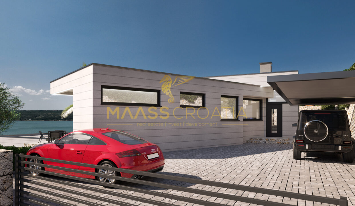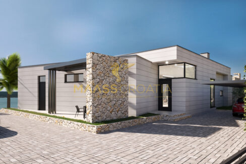 Luksuzni bungalov ravnog krova nalazi se u prekrasnom mjestu Posedarje iu fazi je izgradnje s planiranim završetkom do svibnja 2025. godine.