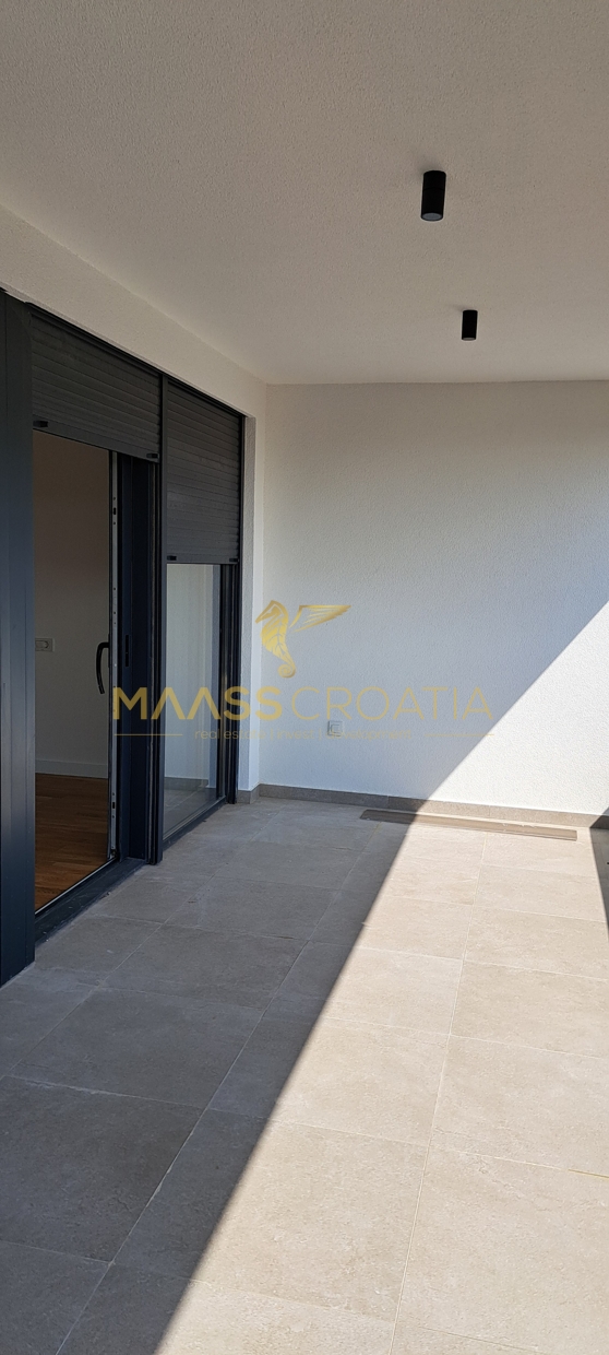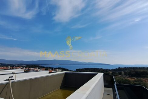 Luksuzni dvospratni apartman s prekrasnim pogledom na more i bazenom na krovu, udaljen oko 500 m od mora i 600 m od prve plaže, te ima oko 116 m² korisne površine.