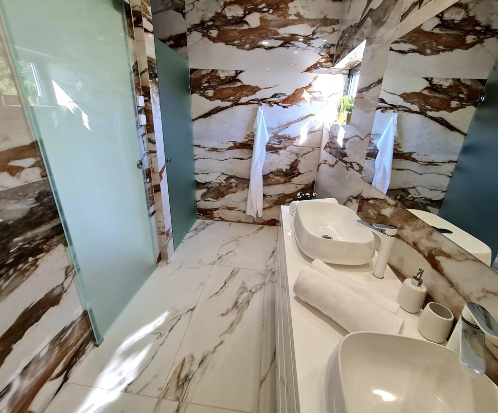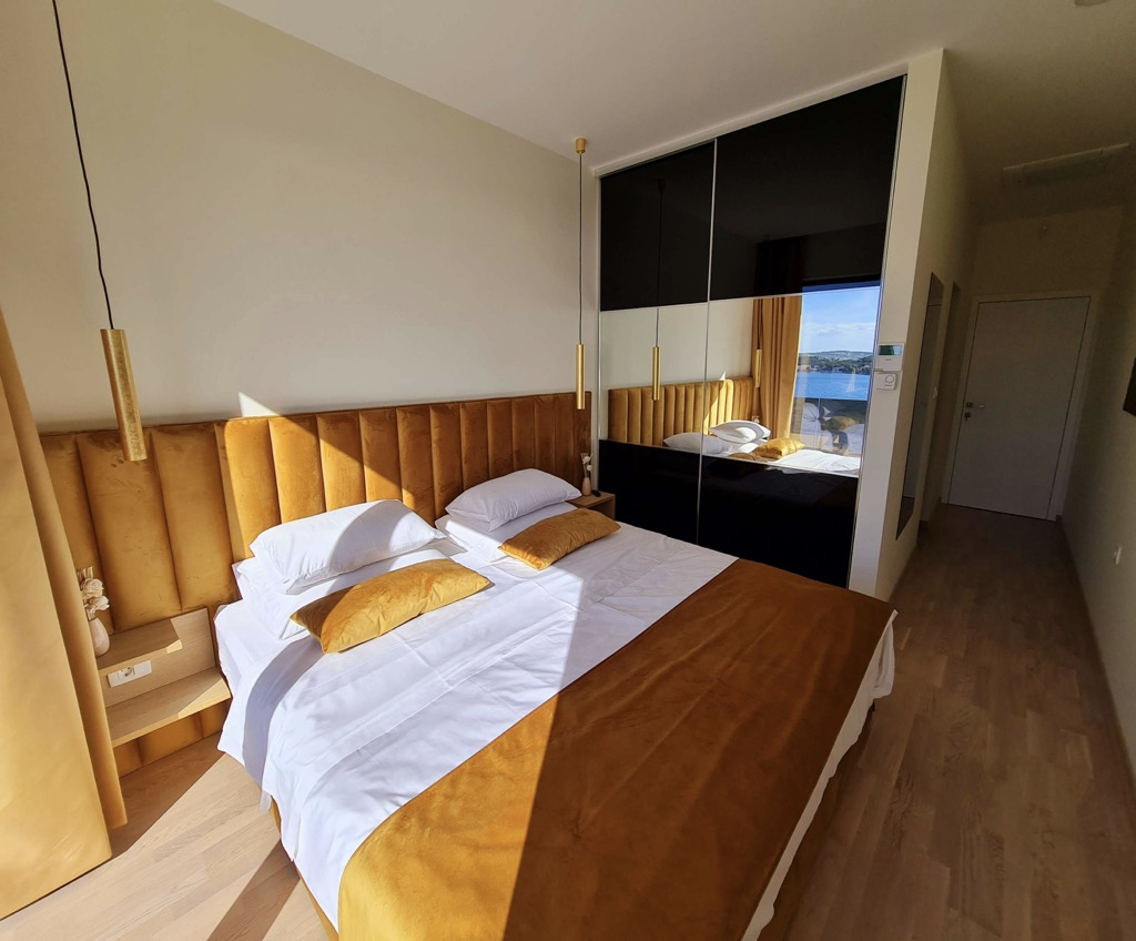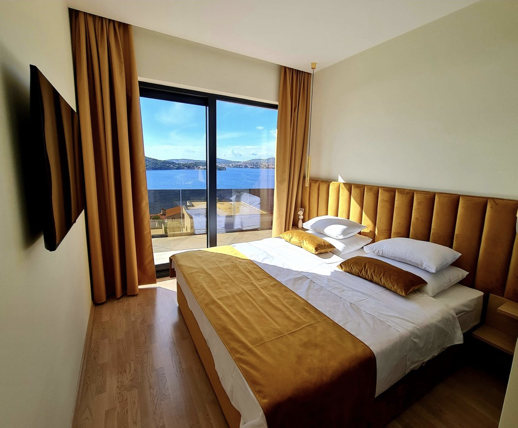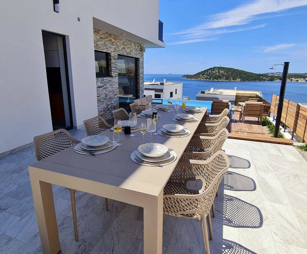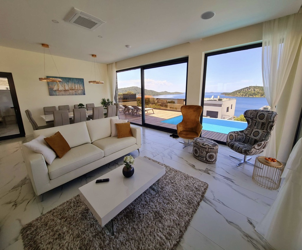Prekrasna nova obiteljska kuća moderne arhitekture i funkcionalnog rasporeda samo 200 m od Plave plaže. Troetažni...