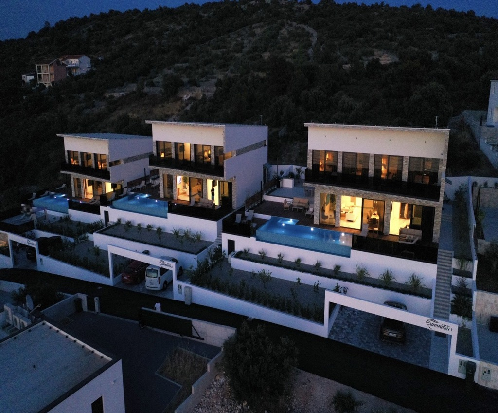 Novoizgrađene kuće u nizu u blizini plaže sa krovnom terasom
