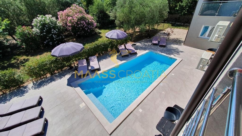 Na samo 650 m od prekrasnih plaža i kristalno čistog mora prodaje se moderna vila s bazenom ukupne površine 295 m², smještena na zemljištu od 800 m².
