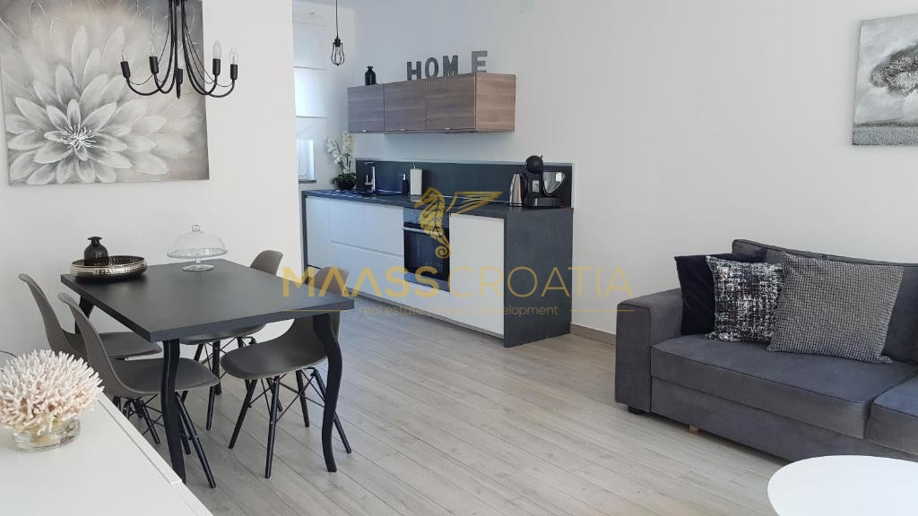 Vila, izgrađena 2017. godine, proteže se na dvije etaže i sastoji se od četiri zasebna apartmana, svaki s vlastitim ulazom.