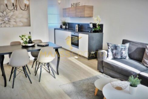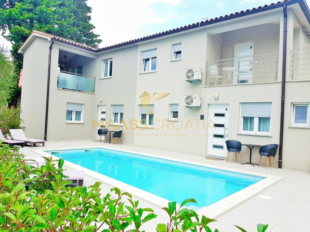 Vila, izgrađena 2017. godine, proteže se na dvije etaže i sastoji se od četiri zasebna apartmana, svaki s vlastitim ulazom.