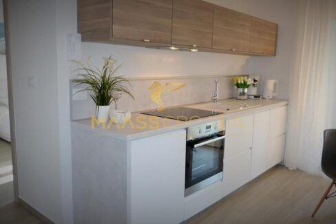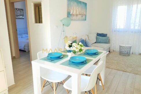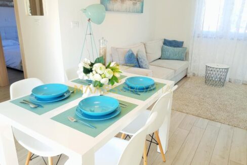 Apartmani u prizemlju imaju izravan izlaz na bazen, sunčalište i uređeni vrt, dok gornji apartmani raspolažu prostranim terasama.