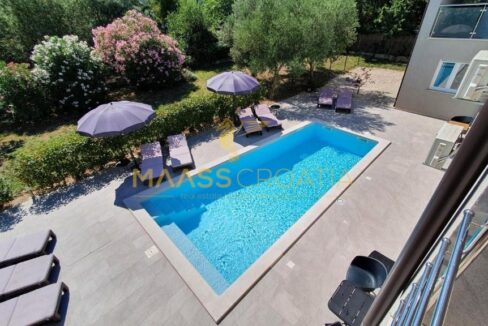Na samo 650 m od prekrasnih plaža i kristalno čistog mora prodaje se moderna vila s bazenom ukupne površine 295 m², smještena na zemljištu od 800 m².