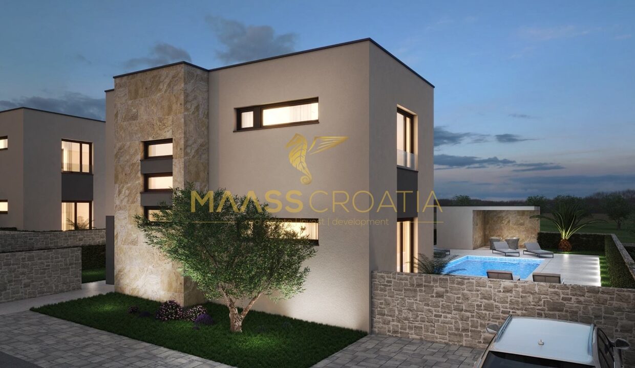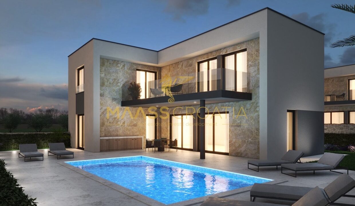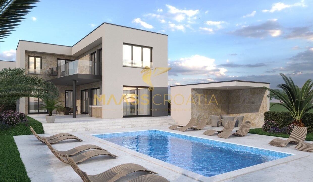 Prostire se na dvije etaže pažljivo osmišljenog rasporeda. U prizemlju se nalazi prostrana dnevna zona s kuhinjom, blagovaonicom i dnevnim boravkom otvorenog koncepta, povezana s natkrivenom terasom i prostorom uz bazen. To znači da možete koristiti i spavaću sobu, kupaonicu te praktičnu ostavu. Ako želite iskoristiti prostor, imat ćete moderan izgled i panoramski pogled na područje, što će vam omogućiti da vidite više od njega.