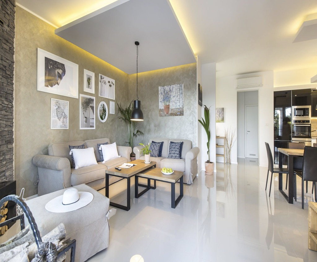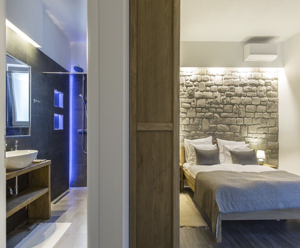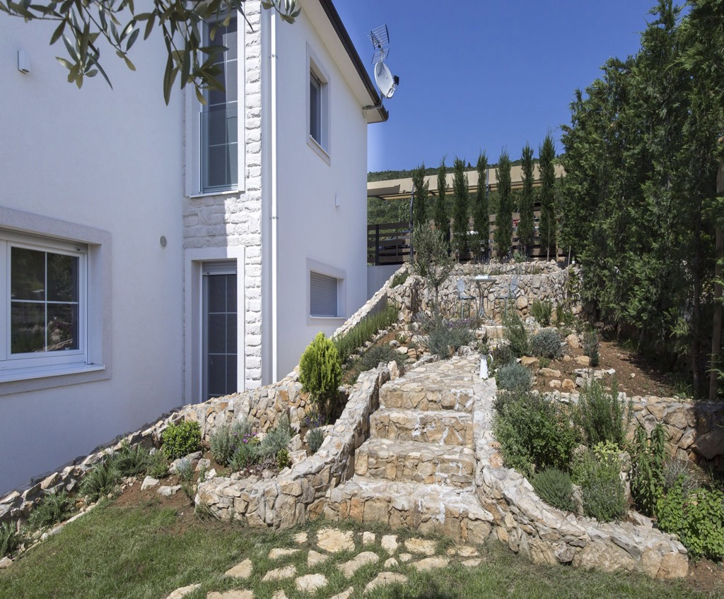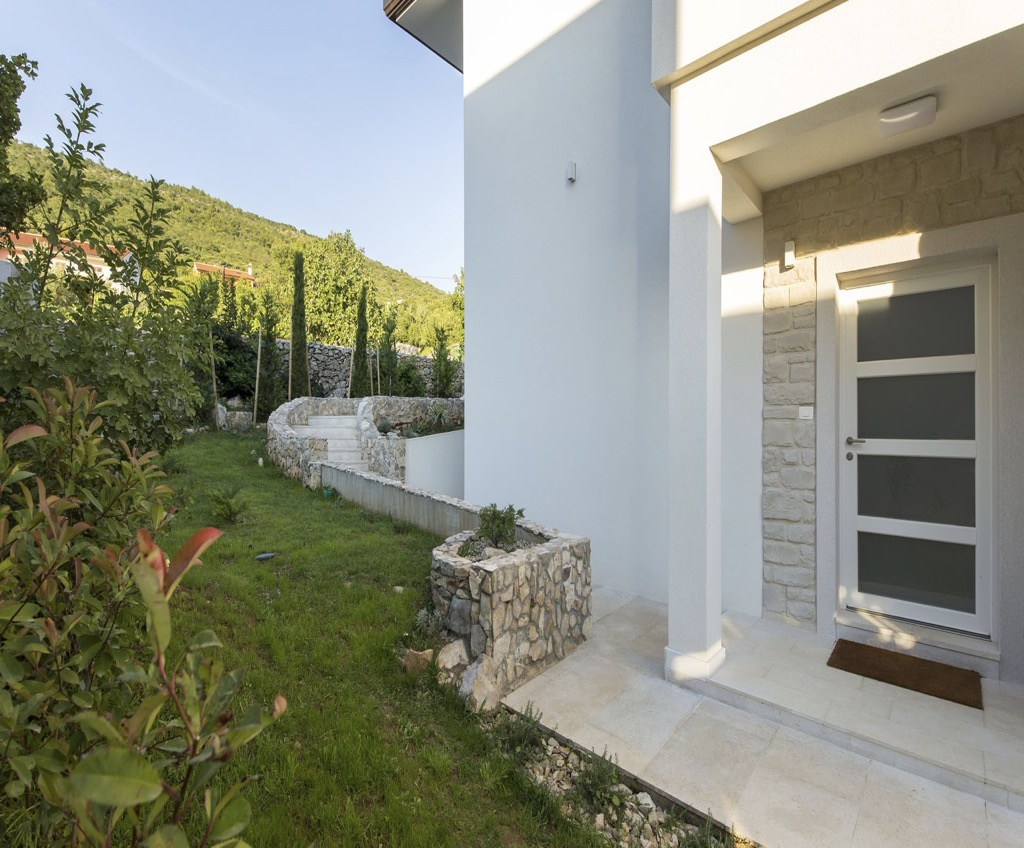 Unutarnji dizajn je jednostavan i minimalistički, ali uređen prirodnim materijalima poput kamena i tvrdog drva, što kući daje pravi mediteranski osjećaj.