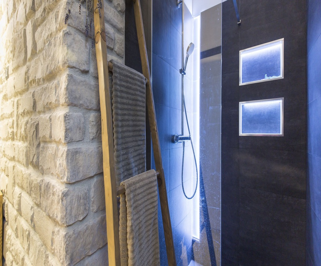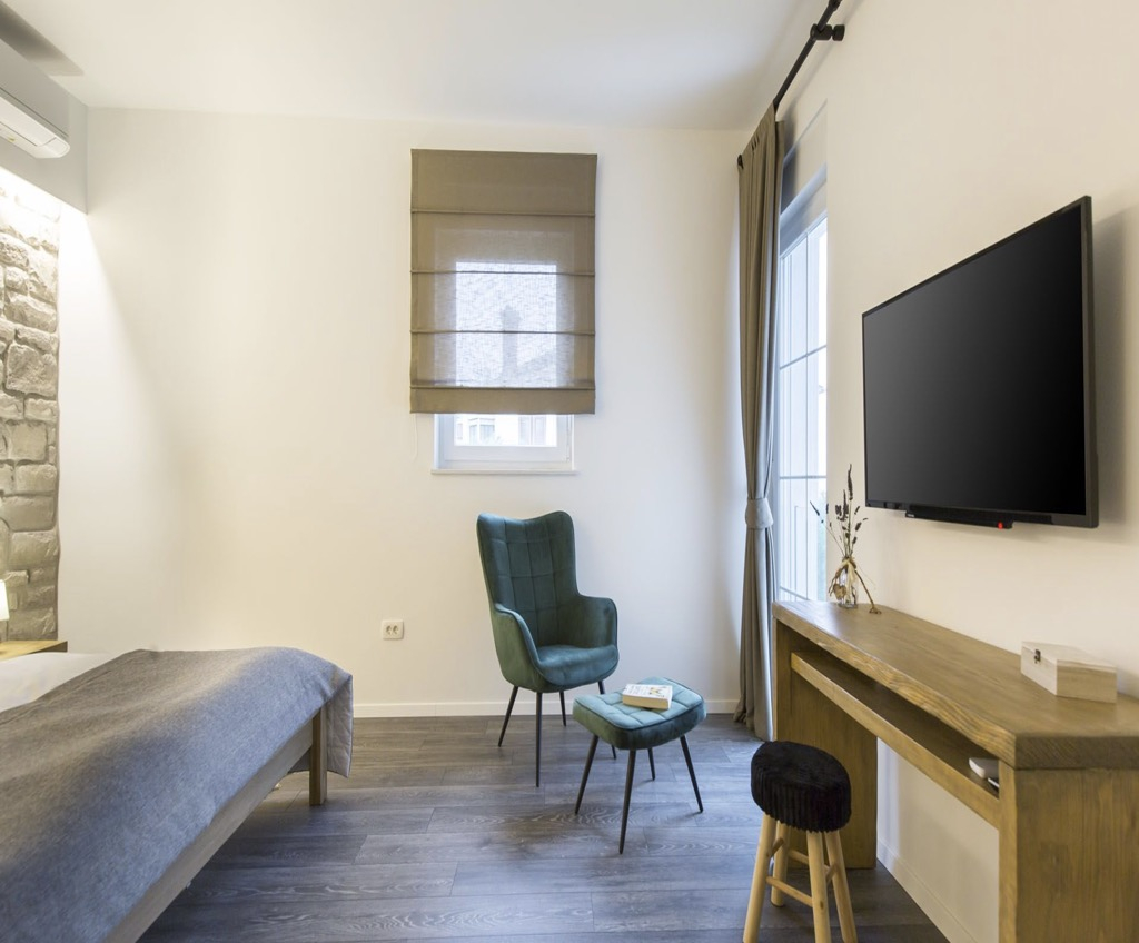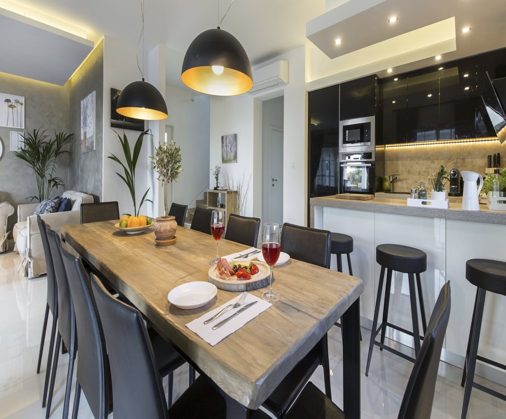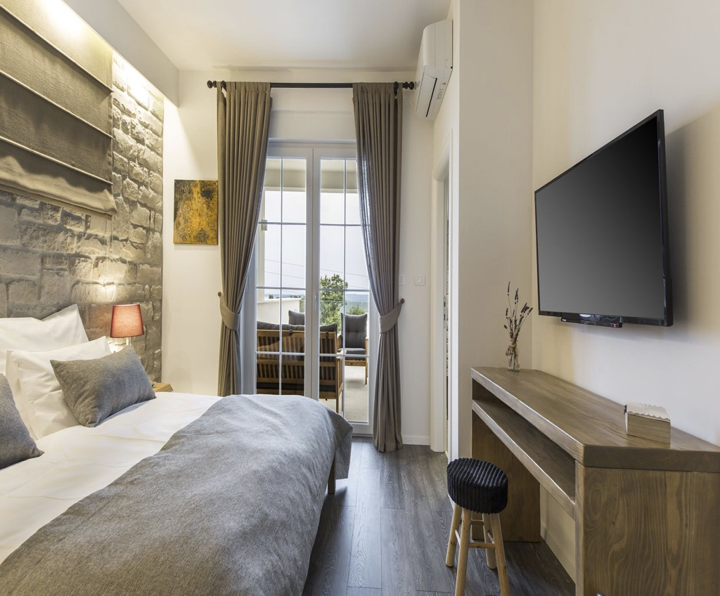 Unutarnji dizajn je jednostavan i minimalistički, ali uređen prirodnim materijalima poput kamena i tvrdog drva, što kući daje pravi mediteranski osjećaj.