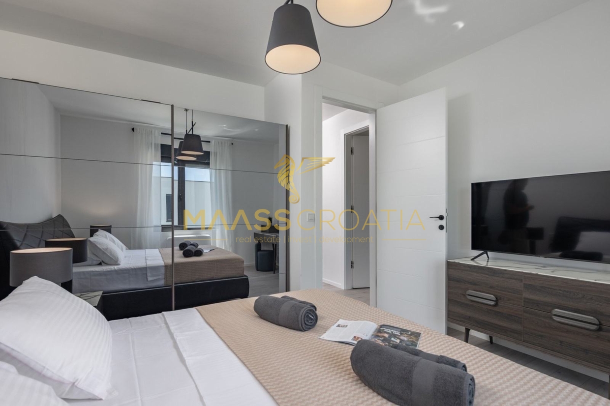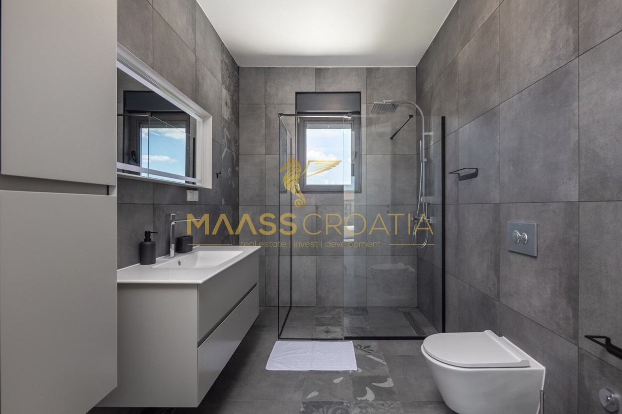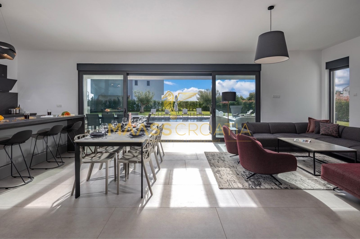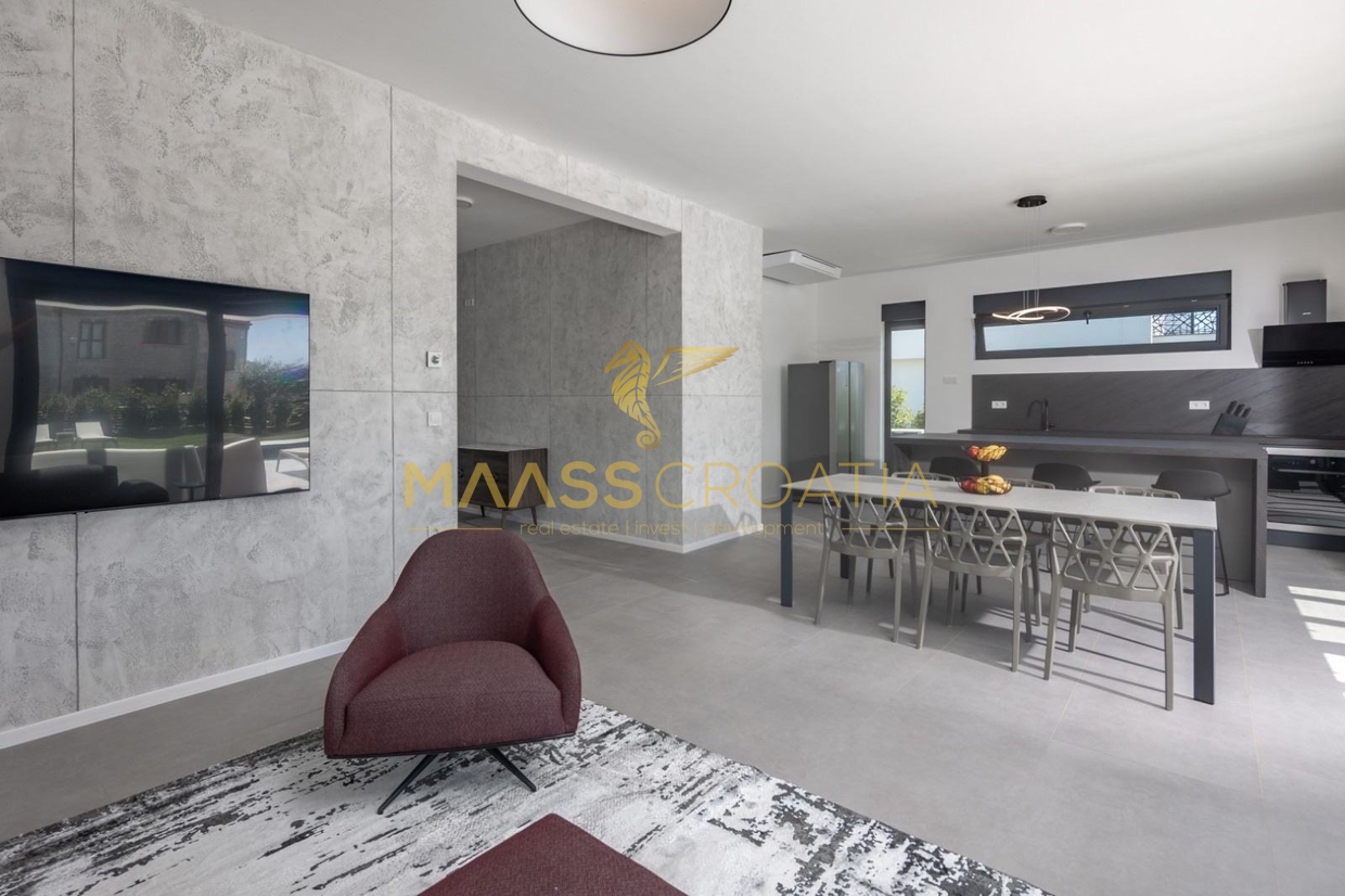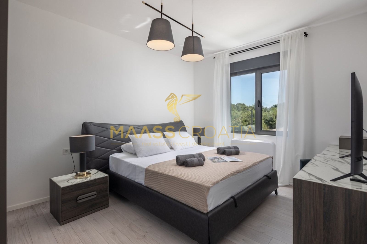 Nova luksuzna vile sa 4 spavaće sobe i 4 kupatila, prostranim dnevnim boravkom uz otvorenu i modernu kuhinju VENETA CUCINE, potpuno su opremljene novim namještajem ENZA HOME i bijelom tehnikom te najmodernijim tv uredjajima od 50-75’’. Bazenska tehnika uz automatsko doziranje i dizalicu topline te keramičke pločice ugradjene u bazen 10 x 5 metara. Vila se nalazi na parceli povrsine cca 1200m2. Dio je kompleksa od 10 vila koje će se iznajmljjivati za turističke svrhe uz očekivani godišnji prihod od 50.000€!