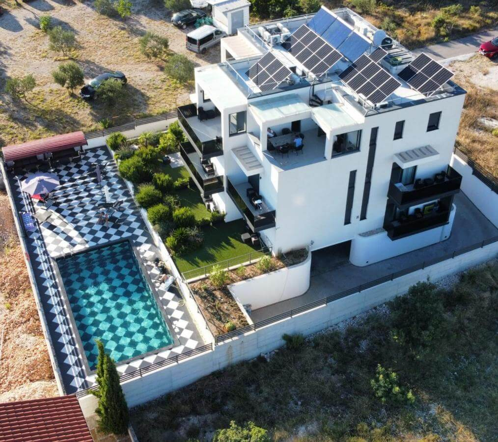 Ova posebna i prekrasna luksuzna vila s bazenom u Podstrani ima prekrasan pogled na more, otoke i grad Split...