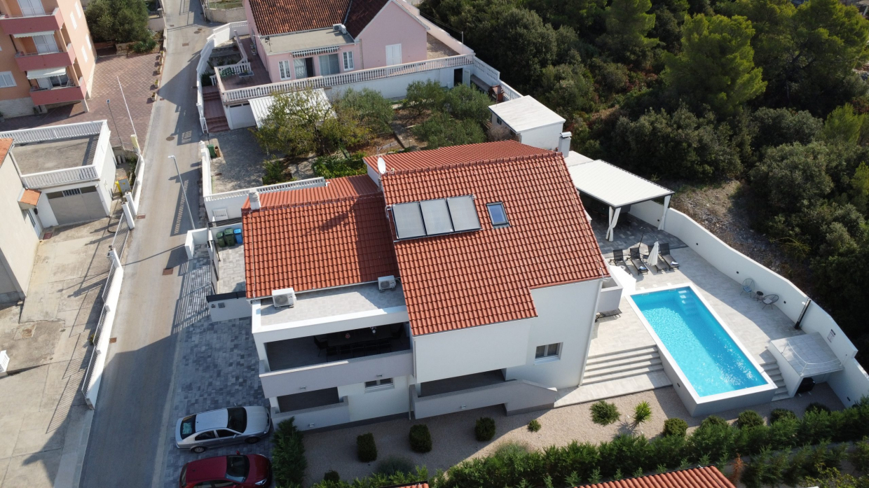 Lokacija: Trogir Centar Trogira: 3 km Zračna luka: 5,5 km Unutarnja površina: 270 m² Veličina parcele: 567 m²...