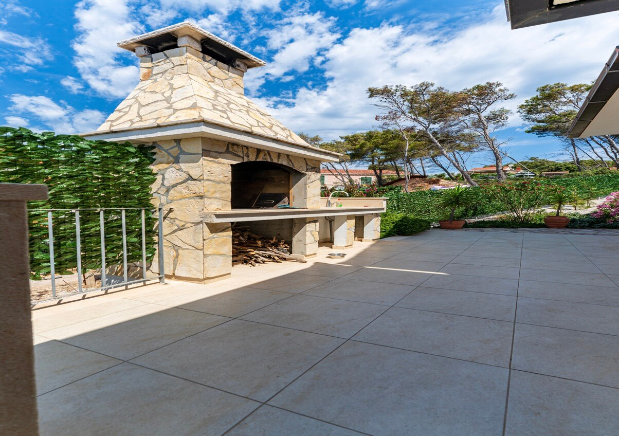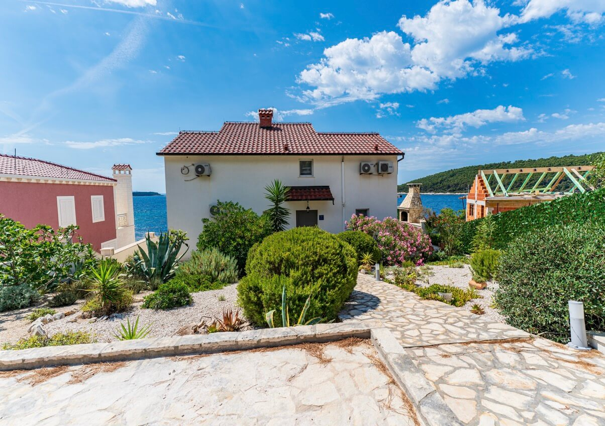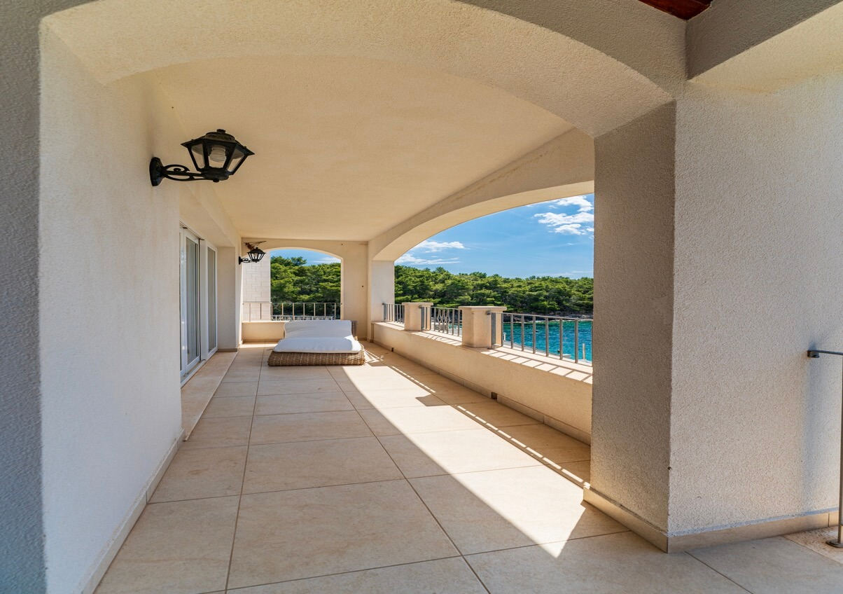 Interijer se sastoji od četiri spavaće sobe i četiri kupaonice, stvarajući svijetao i prozračan prostor s visokim, bijelim stropovima koji ispunjavaju unutrašnjost prirodnim svjetlom. Kuća se može pohvaliti modernim, ali suptilno tradicionalnim stilom, savršeno dočaravajući pravi duh Korčule. Bijela kamena konstrukcija dodaje dašak luksuza i odražava tradicionalni karakter otoka. Izrađen od ovog bezvremenskog prirodnog materijala, ovaj dom će zasigurno ostati elegantan i funkcionalan godinama koje dolaze. Vani, veliki, privlačan bazen i udobna terasa nude prekrasan pogled na more i okolne otoke. Kuća se doslovno nalazi na plaži, što vam omogućuje da se opustite na terasi i osjećate kao da lebdite iznad vode. Pod natkrivenom pergolom, s kamenim roštiljem, možete ugostiti brojna okupljanja i u potpunosti uživati u ovom veličanstvenom okruženju. Tu je i mali, ali šarmantan vrt s lokalnim biljem koje cijelo mjesto čini šarenim i živahnim! Kuća također ima bilijar sobu i, naravno, privatni parking.