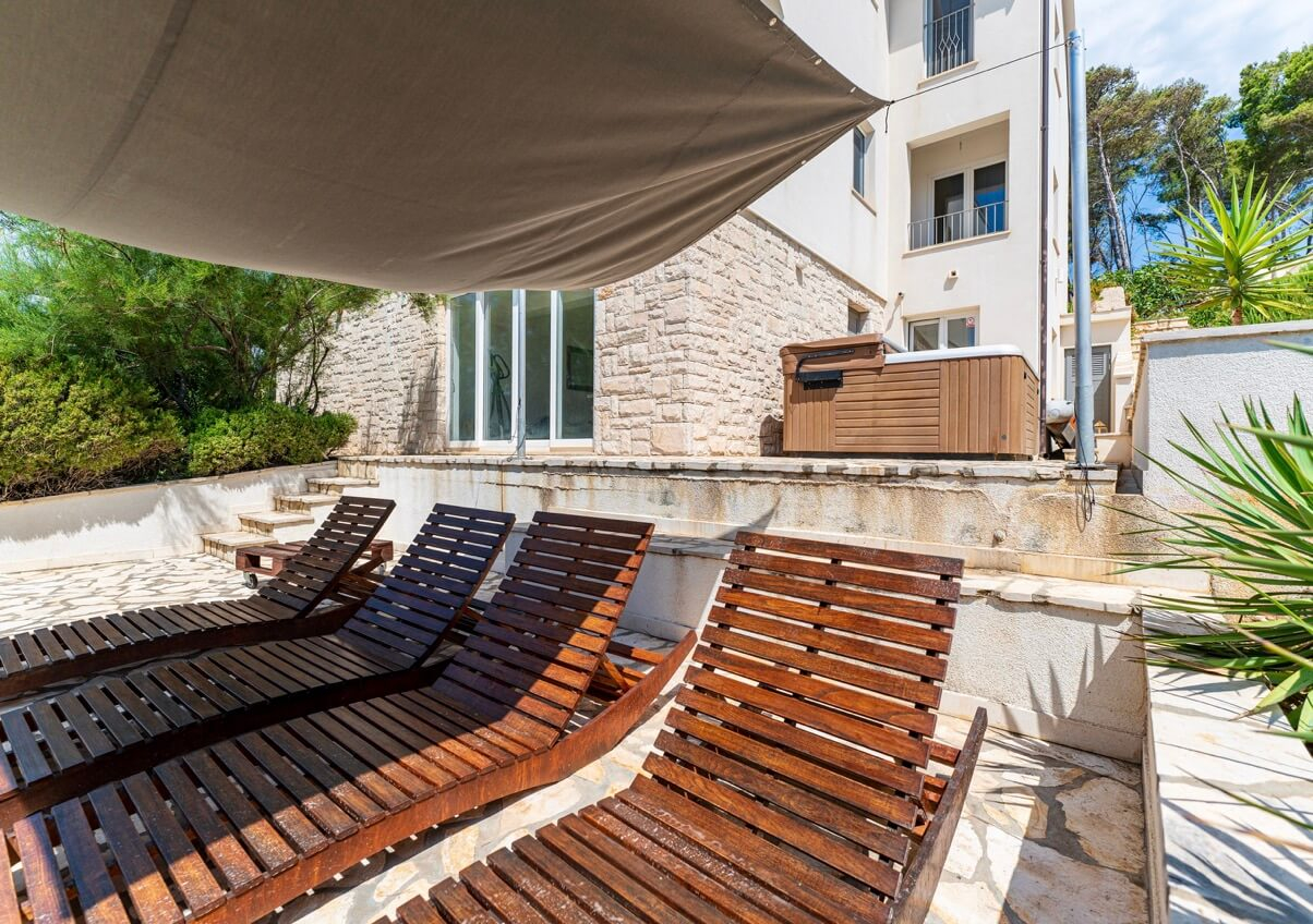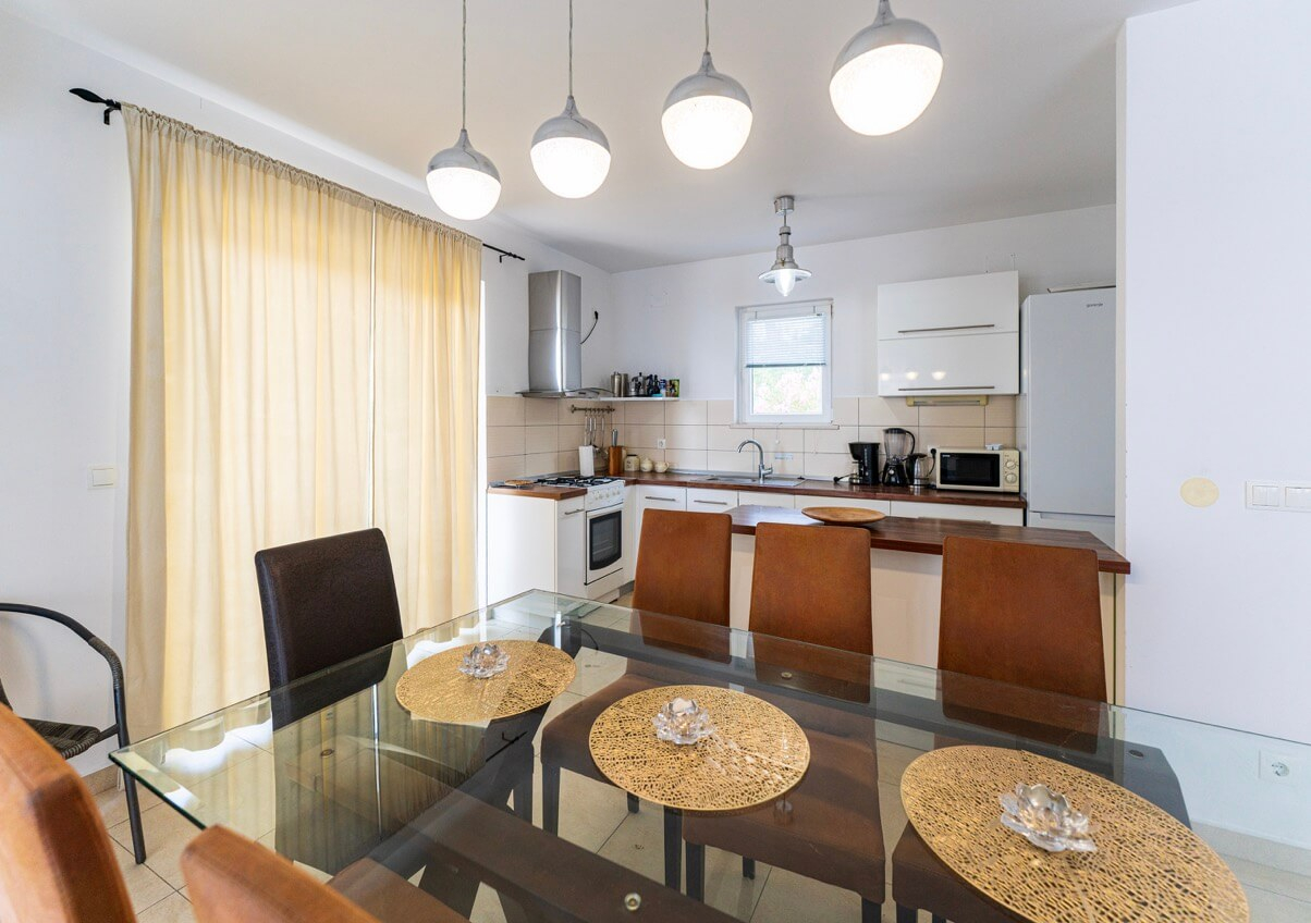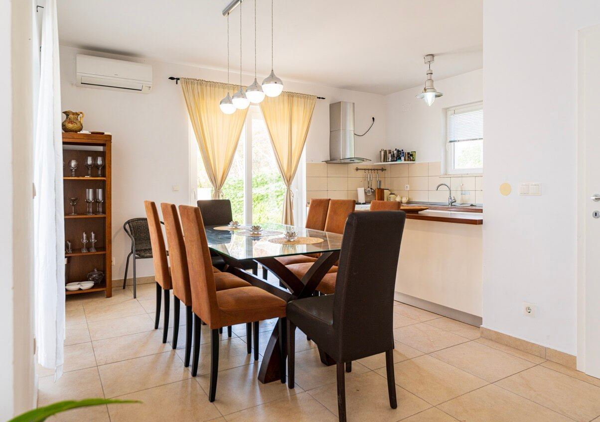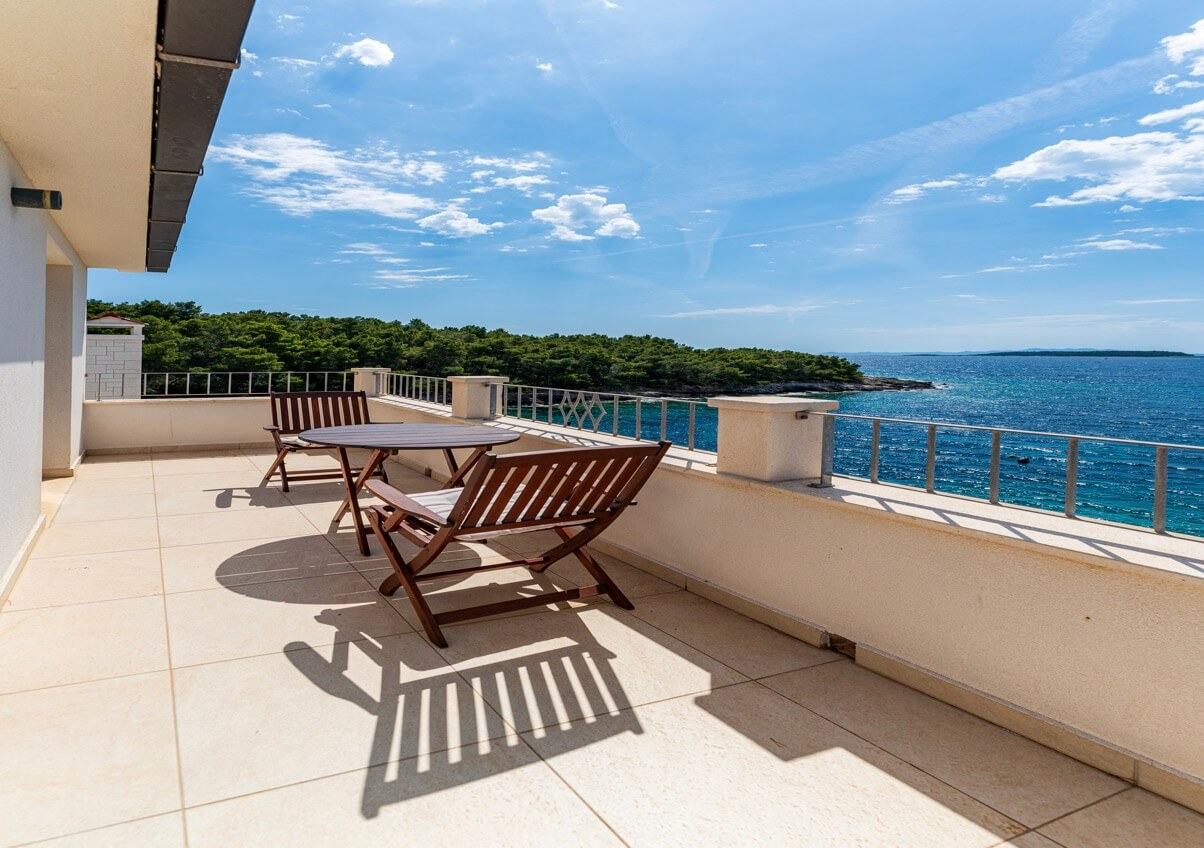 Interijer se sastoji od četiri spavaće sobe i četiri kupaonice, stvarajući svijetao i prozračan prostor s visokim, bijelim stropovima koji ispunjavaju unutrašnjost prirodnim svjetlom. Kuća se može pohvaliti modernim, ali suptilno tradicionalnim stilom, savršeno dočaravajući pravi duh Korčule. Bijela kamena konstrukcija dodaje dašak luksuza i odražava tradicionalni karakter otoka. Izrađen od ovog bezvremenskog prirodnog materijala, ovaj dom će zasigurno ostati elegantan i funkcionalan godinama koje dolaze. Vani, veliki, privlačan bazen i udobna terasa nude prekrasan pogled na more i okolne otoke. Kuća se doslovno nalazi na plaži, što vam omogućuje da se opustite na terasi i osjećate kao da lebdite iznad vode. Pod natkrivenom pergolom, s kamenim roštiljem, možete ugostiti brojna okupljanja i u potpunosti uživati u ovom veličanstvenom okruženju. Tu je i mali, ali šarmantan vrt s lokalnim biljem koje cijelo mjesto čini šarenim i živahnim! Kuća također ima bilijar sobu i, naravno, privatni parking.