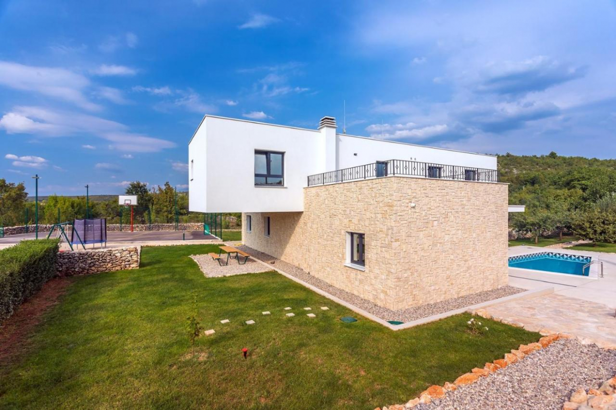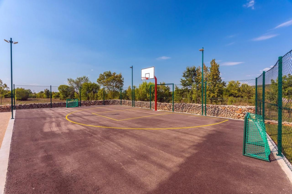 Nekretnina će vas impresionirati svojim privatnim košarkaškim terenom, igralištem i vanjskom teretanom.
