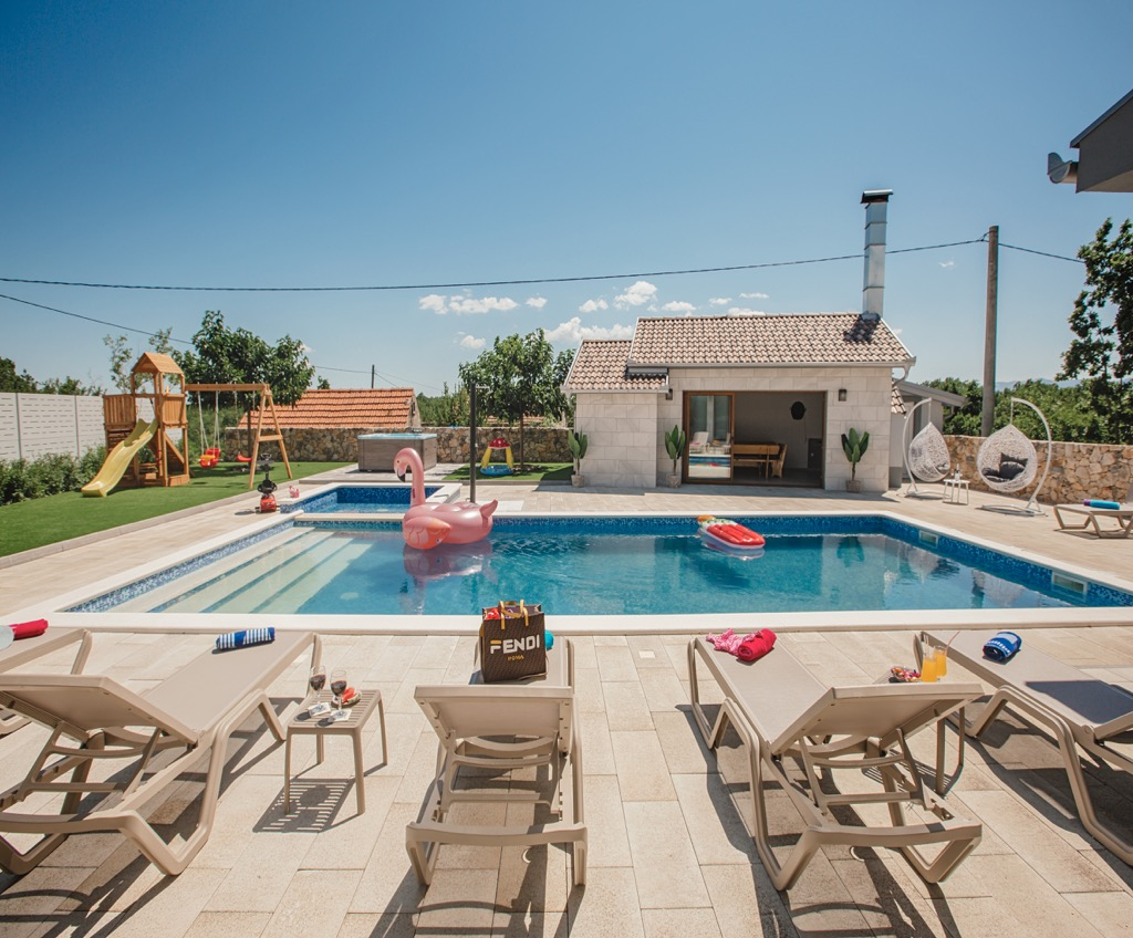 Osim ove već prekrasne kuće, tu je i zasebna vrtna kućica pored bazena, savršena za zabavne ljetne večeri i druženje.