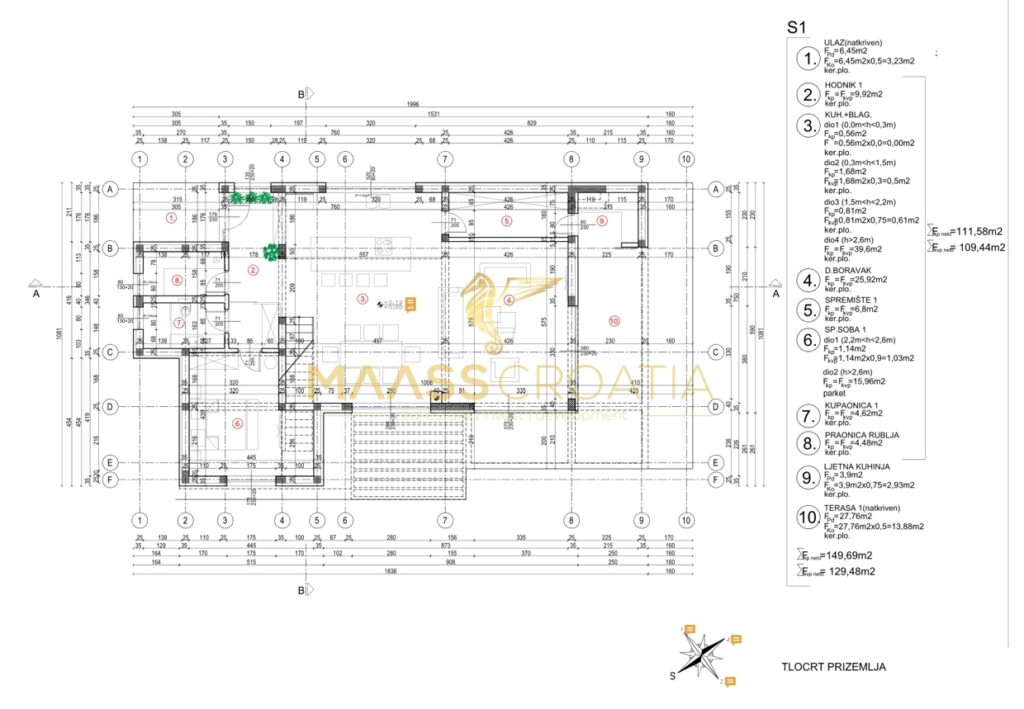 Svojom troetažnom strukturom, vila ima stambenu površinu od 225,21 m² i nudi obilje prostora za ugodan život.