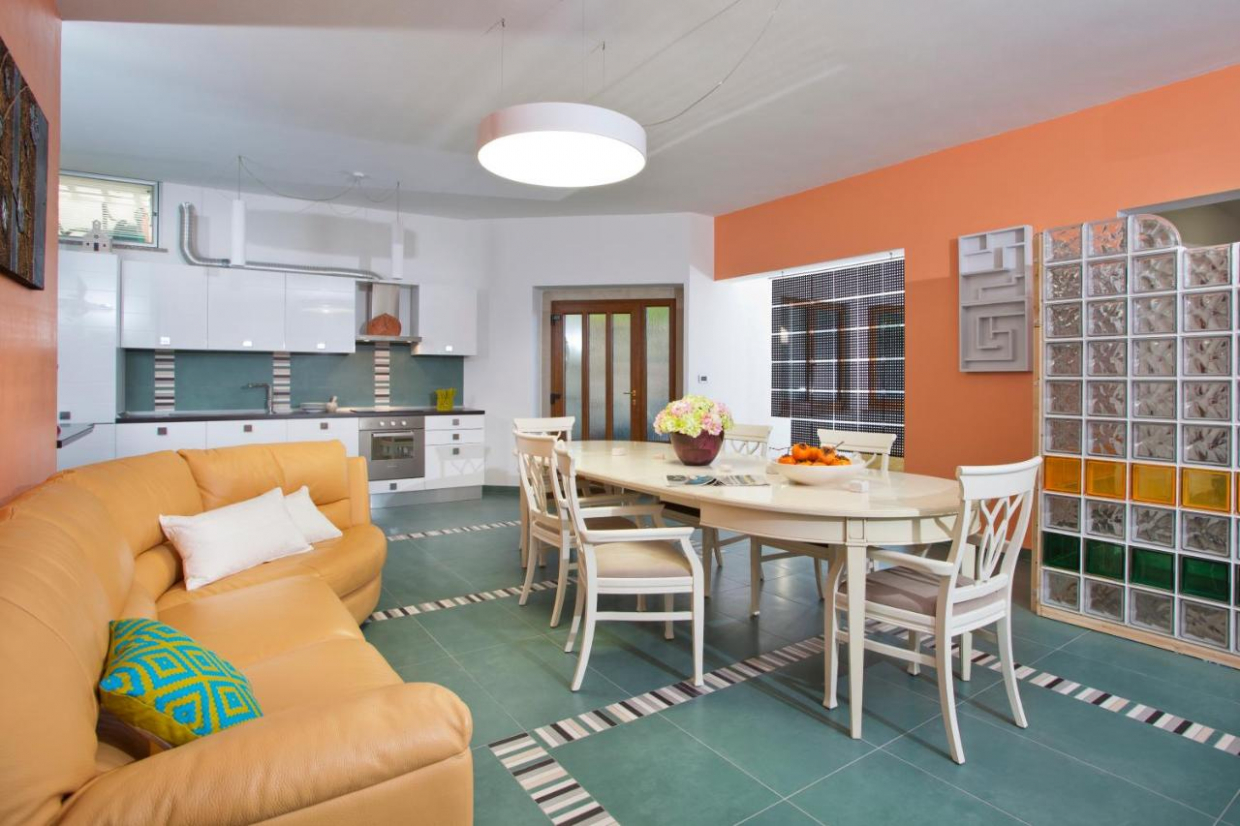 Ova prekrasna, zanimljivo dizajnirana kuća u tradicionalnom stilu nalazi se 3 km od mora i nudi 400 m² stambenog prostora na 2 kata: 5 spavaćih soba, 4 kupaonice te dnevni boravak i blagovaonicu.