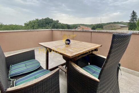 Ima dvije spavaće sobe, prostranu kupaonicu s kadom i balkon s pogledom na okolicu.