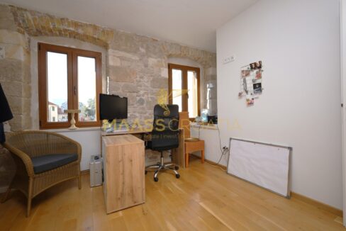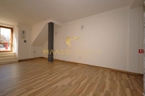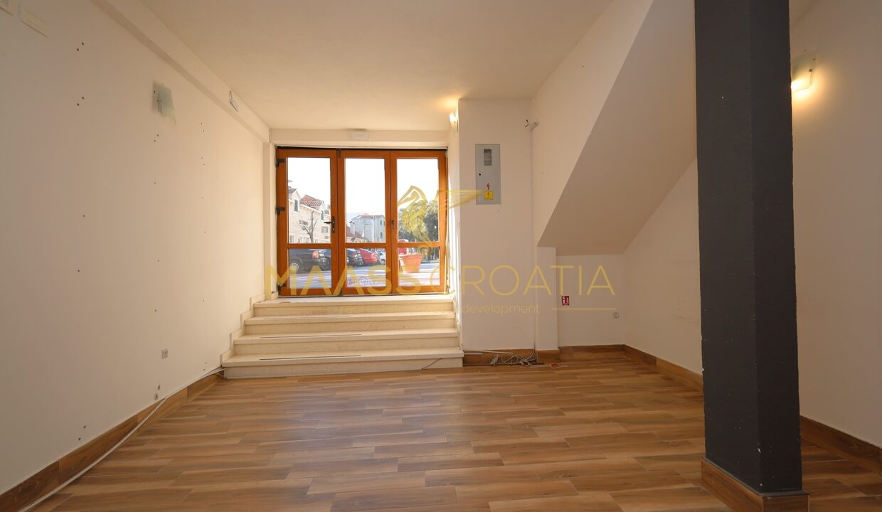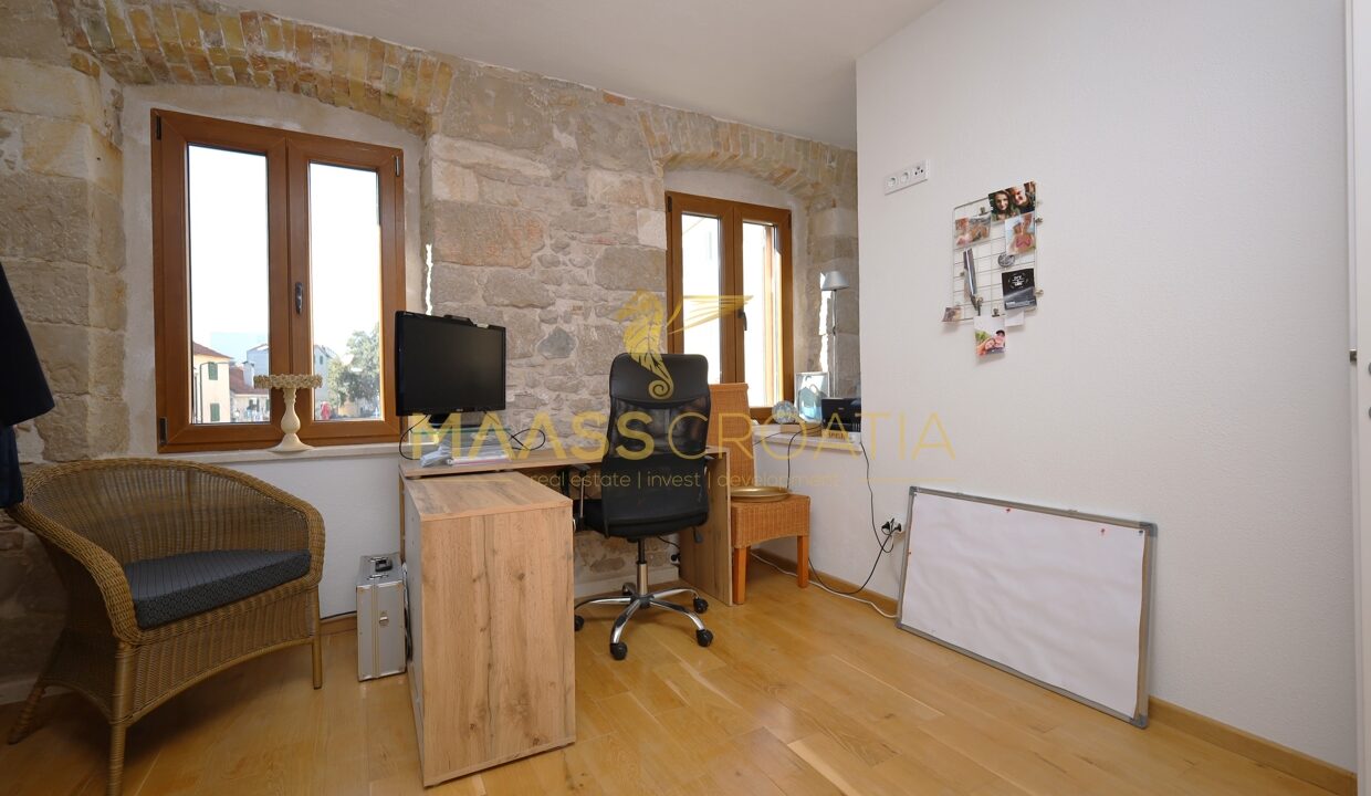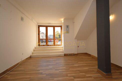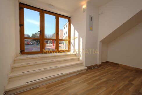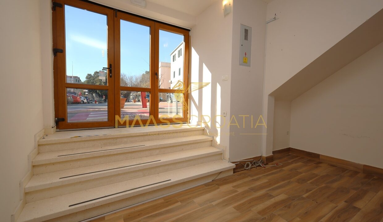 U prizemlju se nalazi poslovni prostor od 46,6 m², dok se trosobni stan od 123,5 m² prostire na 1. kat, 2. kat i potkrovlje. Kuća ima dvije terase: na prvom katu nalazi se terasa od 3,00 m², a na potkrovlju prostrana terasa od 23,57 m² s pogledom na središte grada, park i more. Na 1. katu nalaze se hodnik i dvije spavaće sobe, svaka s vlastitom kupaonicom. Na 2. katu nalazi se kuhinja s blagovaonicom i dnevnim boravkom u jednoj cjelini, te dodatni WC. U potkrovlju je spavaća soba s kupaonicom i izlazom na prostranu terasu s lijepim pogledom.