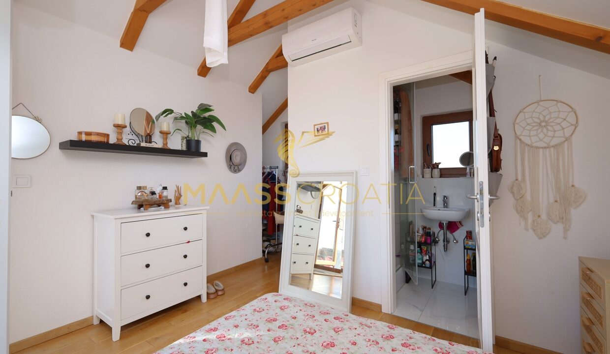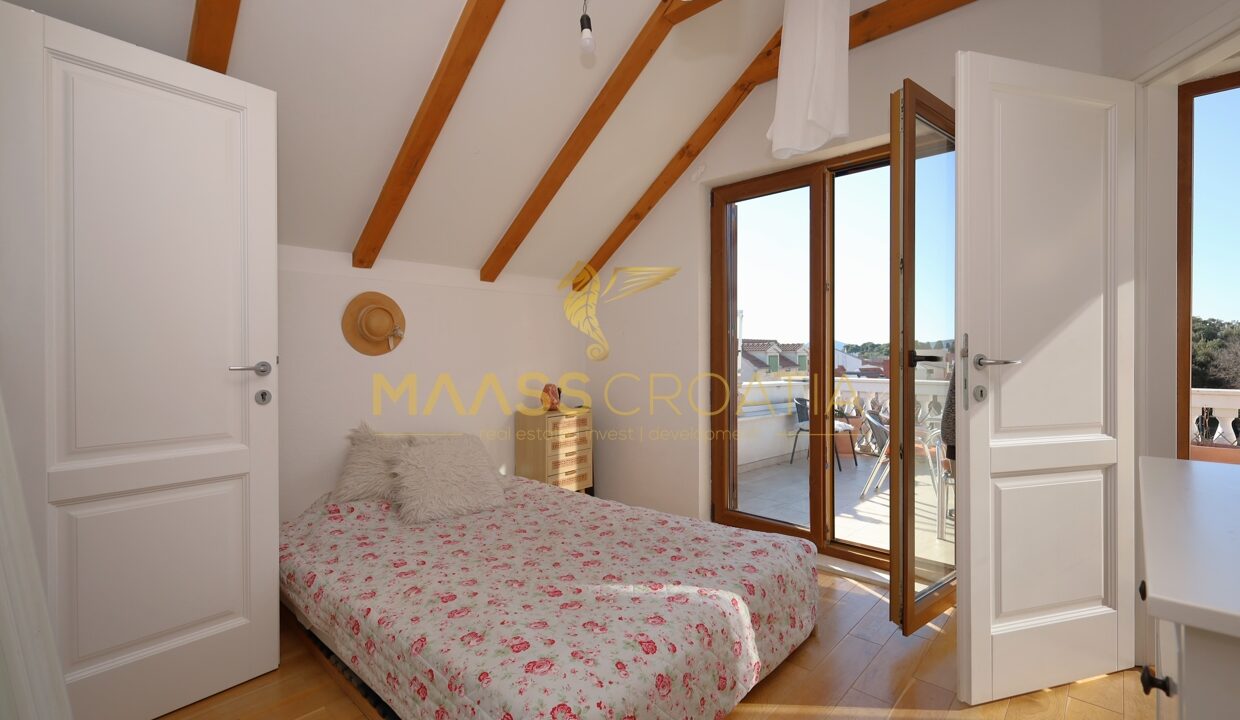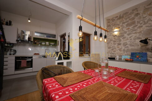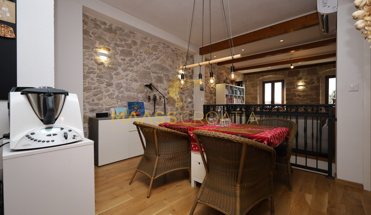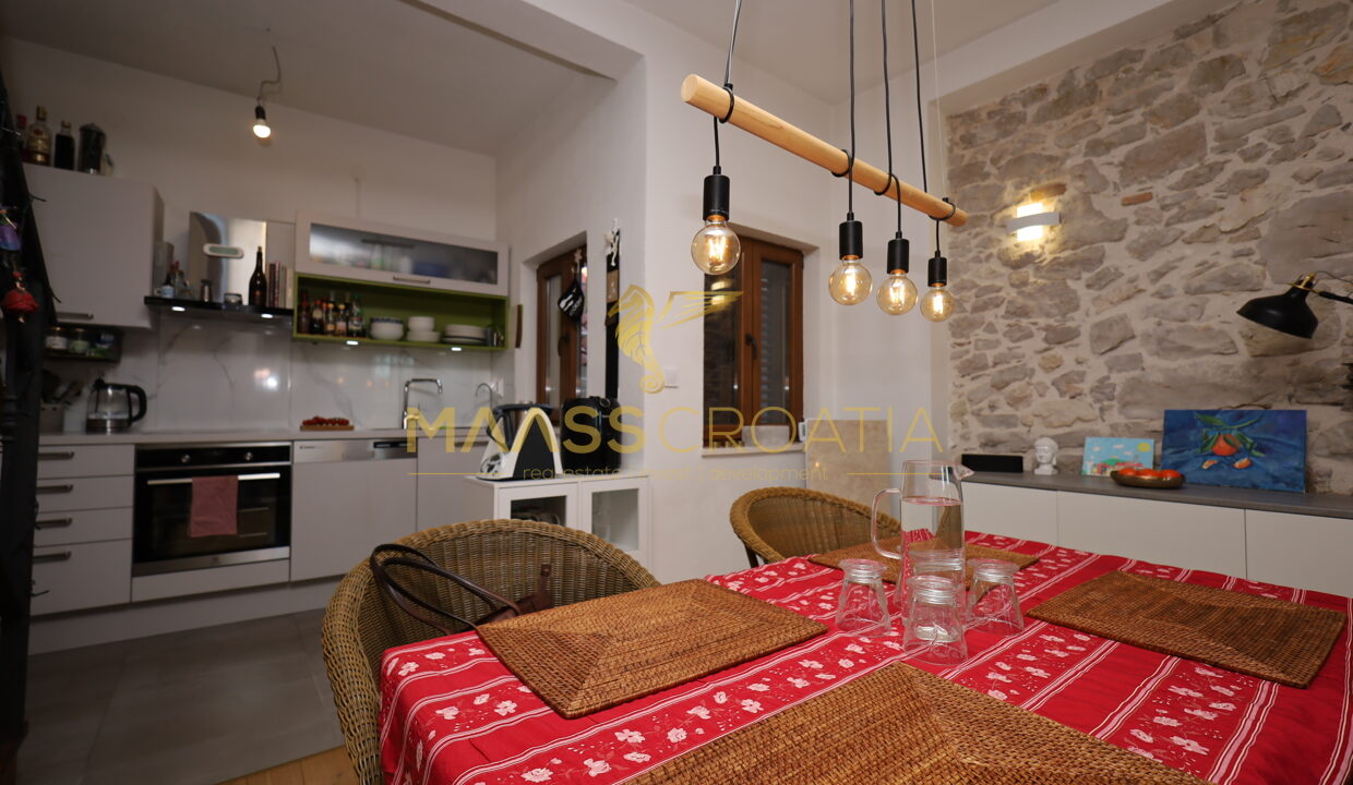 Kompletno renovirana kamenica u rustikalnom stilu u centru Vodica. Kuća se nalazi u neposrednoj blizini šetnice uz more i plaže te se prostire na 4 kata (prizemlje + 1. kat + 2. kat + visoko potkrovlje) s ukupnom korisnom površinom od 170,1 m².