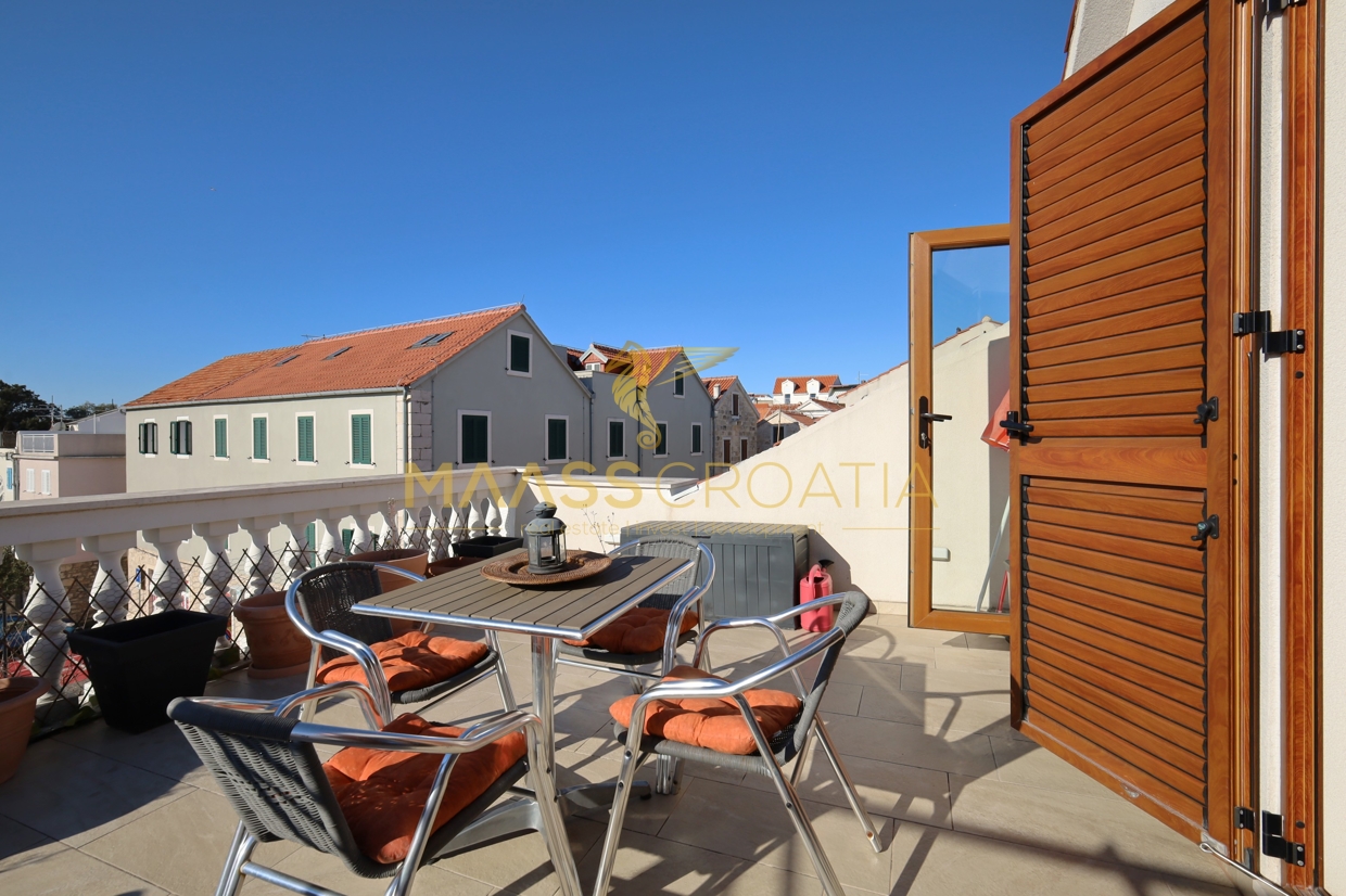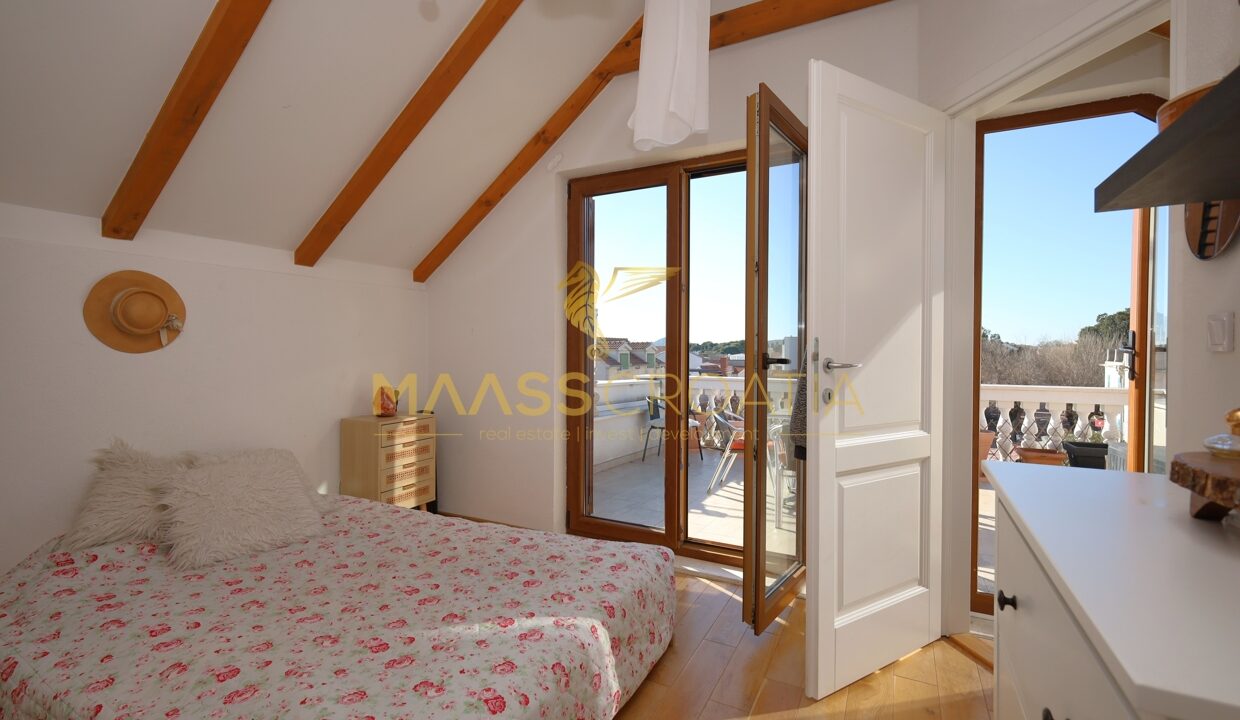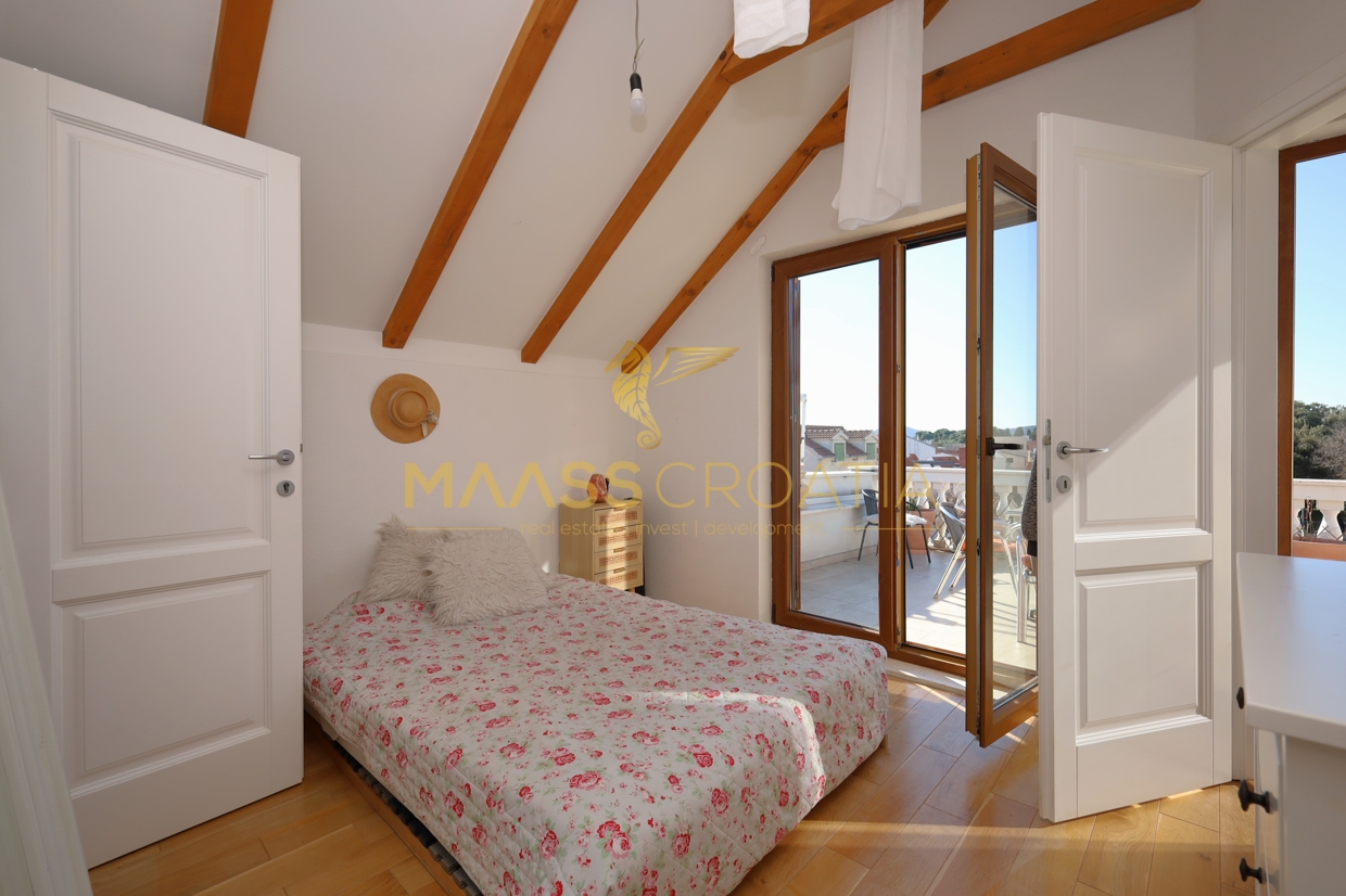Kompletno renovirana kamenica u rustikalnom stilu u centru Vodica. Kuća se nalazi u neposrednoj blizini šetnice uz more i plaže te se prostire na 4 kata (prizemlje + 1. kat + 2. kat + visoko potkrovlje) s ukupnom korisnom površinom od 170,1 m².